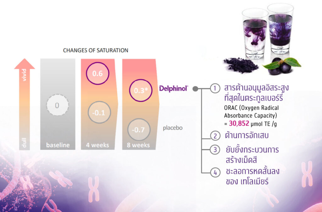 นอกจากนี้มักพบเทโลเมียร์ในผักและผลไม้ตระกูลเบอร์รี่ เช่น มากิเบอร์รี่ (Maqui berry)เป็นผลไม้เก่าแก่ที่พบในป่า Patagonia ประเทศชิลี ซึ่งชนเผ่าพื้นเมือง “Mabuche” ใช้กันมายาวนานเพื่อเป็นอาหารและยารักษาโรคต่างๆ ซึ่งในเวลาต่อมาได้มีการค้นพบว่า มากิเบอร์รีเป็นผลไม้ที่มีสาร ชื่อว่า “เดลฟินิดิน (Delphinidin)” สูงมาก ซึ่งเป็นผลไม้ที่มีสารต้านอนุมูลอิสระสูงที่สุดในโลก ช่วยชะลอการหดสั้นของ เทโลเมียร์ (Telomere) โดยมีรายงานวิจัยจาก วารสารScience News of AnklamExtrakt GmbHเมื่อปี 2019ศึกษาพบว่า สารสกัด “เดลฟินิดิน (Delphinidin)”ใน มากิเบอร์รี่ (Maqui berry)ช่วยลดอัตราการหดสั้นลงของเทโลเมียร์หลังทาน 8 สัปดาห์ภายใต้สภาวะที่มีอนุมูลอิสระได้มากถึง51 % จึงทำให้สารสกัดจากมากิเบอร์รี่ได้รับความนิยมนำมาทำเป็นสารสกัดสำคัญในอาหารเสริมคอลลาเจนเพื่อช่วยชะลอความแก่ของเซลล์บำรุงผิวพรรณให้กลับมาเปล่งปลั่งสดใสเป็นอีกหนึ่งทางเลือกสุขภาพที่หาทานได้ง่ายและสะดวก