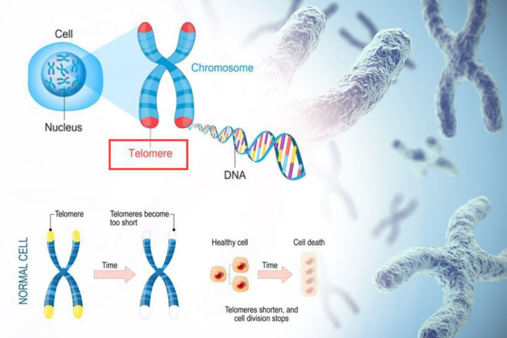 และยังมีการศึกษาพบว่าเทโลเมียร์จะหดสั้นลงเรื่อย ๆ ประมาณ 30-200 คู่เบส ในทุก ๆ รอบของการแบ่งเซลล์ และความยาวของเทโลเมียร์มีความสำคัญในการกำหนดความสามารถในการแบ่งเซลล์ จากที่ทราบแล้วว่าปลายโครโมโซมในส่วนของเทโลเมียร์นั้นจะสั้นลงเรื่อย ๆ ทุก ๆ ครั้งที่เซลล์มีการแบ่งตัว เมื่อความยาวของเทโลเมียร์นั้นสั้นจนถึงระดับที่ถูกกำหนดไว้ เซลล์จะหยุดการแบ่งตัวไปตลอด (Senescence) หรือเสื่อมสลายหรือเซลล์จะกระตุ้นให้เกิดการตายของเซลล์ด้วยตนเอง (Apoptosis)