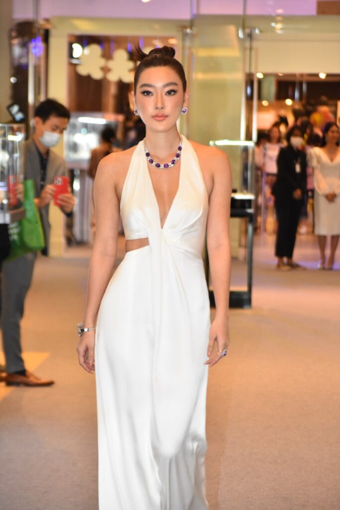 โดยไฮไลท์อัญมณีที่ถ่ายทอดผ่านขบวนแฟชั่นโชว์ ล้วนมีความหมายทรงคุณค่า ดังนี้ 1. THE HEART OF CHRISTMAS (เดอะ-ฮาร์ท-ออฟ-คริสมาสต์) เข็มกลัดพลอยบลูโทพาสสีฟ้าสดใสประดับเพชรสีขาวอันบริสุทธิ์ระยิบระยับล้อมรอบ เรียงร้อยเป็นรูปทรงหัวใจ เป็นดั่งของขวัญอันล้ำค่าที่สุดแสนพิเศษ ตัวแทนของความสุข ช่วงเวลาแห่งงานรื่นเริง ซึ่งถือเป็นหัวใจสำคัญในการเฉลิมฉลองของเทศกาลคริสต์มาส 2. THE CROWN HAPPINESS (เดอะ-คราวน์-แฮฟพิเนส) มงกุฎมรกตประดับเพชร สีเขียวของมรกตเป็นตัวแทนของความสุข ความเชื่อ ความศรัทธา และความงดงาม ซึ่งรายล้อมด้วยสีขาวบริสุทธิ์ของเพชรที่เรียงร้อยเป็นลวดลายที่ประณีตพิถีพิถัน เปรียบเป็นตัวแทนของหิมะที่ได้โปรยปรายปกคลุมสร้างความสวยงามในค่ำคืนอันศักดิ์สิทธิ์ของคริสต์มาสอีฟ หรือ White Christmas 3. THE BEST PART (เดอะ-เบสท-พาร์ท) เข็มกลัดพลอยไพลินและบุษราคัมประดับเพชร โบว์ตัวแทนของความสดใส เชื่อมต่อกับบุษราคัมที่โอบล้อมพลอยไพลินเอาไว้สร้างความอบอุ่น อ่อนโยน อบอวลไปด้วยความรัก ความปรารถนาดี เป็นดั่งคำอวยพรที่ไพเราะที่สุดในช่วงเวลาที่แสนพิเศษครั้งนี้ 4. DREAMS COME TRUE (ดรีม-คัม-ทรู) ต่างหูพลอยไพลินมรกตล้อมเพชร เปรียบดั่งของขวัญสุดแสนพิเศษที่มอบให้แก่คนที่รัก แทนคำอวยพรที่ขอให้ความฝันและความปรารถนานั้นเกิดขึ้นจริงในช่วงเทศกาลแห่งความสุข 5. ONCE UPON A TIME (วันซ-อะพอน-อะ-ไทม) สร้อยคอพลอยแทนซาไนท์ประดับเพชร ว่ากันว่ากาลครั้งหนึ่งนานมาแล้ว ณ ดินแดนอันไกลโพ้น เมืองแห่งความอุดมสมบูรณ์เต็มไปด้วยความงดงาม ได้ถูกปกคลุมด้วยหิมะสีขาวบริสุทธิ์ที่โปรยปรายไกลสุดลูกหูลูกตา หิมะได้ทำหน้าที่อันสำคัญคือคอยดูแลและปกป้องสิ่งสวยงามที่อยู่ภายใต้หิมะนั้นให้คงอยู่อย่างถาวรตราบนานเท่านาน และ 6. THE BRIGHT SIDE (เดอะ-ไบรท-ไซด) สร้อยข้อมือประดับเพชร แสงสว่างและความแวววาวของเพชรที่เรียงร้อยทอดยาวเป็นดั่งเส้นทางที่นำไปสู่สิ่งที่ดี ปลุกพลังบวกให้มีพลังก้าวเดินต่อไปบนเส้นทางที่สดใส ถือเป็นของขวัญอีกหนึ่งชิ้นที่เหมาะแก่การมอบให้คนที่รักในช่วงเทศกาลแห่งความสุขครั้งนี้