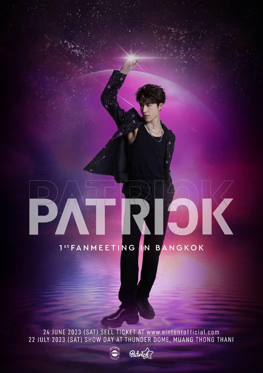 แพทริค ณัฐวรรธ์ ฟิงค์เลอร์ หรือ แพทริค อดีตสมาชิกวง INTO1 หนุ่มน้อยมหัศจรรย์มากความสามารถมีผลงานมากมายทั้งร้องเพลงและการแสดงเตรียมบินลัดฟ้ามาไทย เพื่อพบปะแฟนๆในวัน เสาร์ ที่ 22 กรกฎาคม นี้ ที่ ธันเดอร์โดม เมืองทองธานี กับงาน PATRICK 1st Fan Meeting in Thailand โดยมี บริษัท อี–อินเทนท์ จำกัด (E-Intent Co., Ltd.) เป็นผู้จัดงาน ซึ่งเป็นบริษัทที่คว่ำหวอดนำนักแสดงแถวหน้า นำศิลปินต่างประเทศเข้ามาโหมอีเวนต์ในไทยได้สำเร็จ