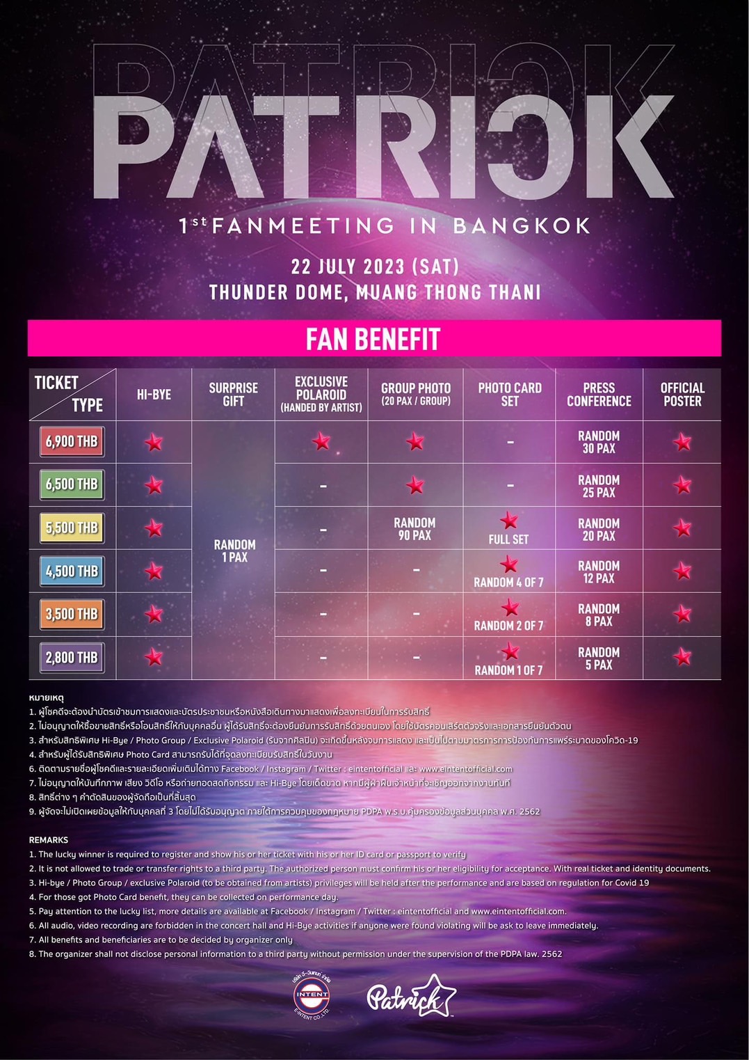 ทำความรู้จัก !! บริษัท อี-อินเทนท์ จำกัด (E-Intent Co., Ltd.) l ผู้จัดแฟนมีตครั้งแรก แพทริค ณัฐวรรธ์ กับงาน PATRICK 1st Fan Meeting in Thailand