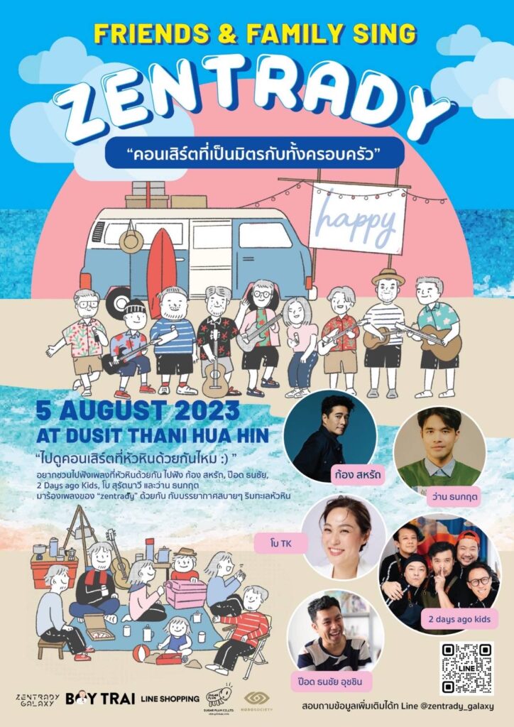 ใครที่คิดถึงบรรยากาศคอนเสิร์ตสุดชิล ที่มาพร้อมเพลงรักอบอุ่นสไตล์ บอย ตรัย ภูมิรัตน ศิลปินและนักแต่งเพลงแถวหน้าของเมืองไทย (Boy Trai Sing Zentrady) เจ้าของปลายปากกาเพลงฮิตอย่าง พื้นที่เล็ก ๆ , เผลอ, กลับมา, เปลี่ยนไปทุกอย่าง, ความลับ, ฯลฯ กลับมาอีกครั้งตามคำเรียกร้อง พร้อมอัปเกรดความฟินด้วยการชวนเพื่อน ๆ ศิลปิน ยกพลมาร้องเพลงด้วยกัน ในคอนเสิร์ต “Friends & Family SingZentrady” ซึ่งครั้งนี้จะพาแฟน ๆ ไปนั่งฟังเพลงกันริมทะเล ณ โรงแรมดุสิตธานี หัวหิน ในวันเสาร์ที่ 5สิงหาคม 2023 เวลา 19.00 น. ให้ทุกคนจะได้ปล่อยใจจอย ๆ ไปกับเพลงเพราะ ๆ จากศิลปินคุณภาพ นำโดย บอย ตรัย ที่กอดคอเพื่อนพ้องน้องพี่ทั้ง ก้อง สหรัถ , ป๊อด ธนชัย, 2 Days ago Kids, โบ สุรัตนาวี และ ว่าน ธนกฤต มาร้องเพลงของ “Zentrady” คละเคล้าเสียงคลื่นลมไปด้วยกัน ท่ามกลางบรรยากาศสบายๆ ริมหาด รวมถึงยังมีกิจกรรมสุดพิเศษไว้รอต้อนรับ ไม่ว่าจะจูงมือคนรัก นัดแก๊งค์เพื่อนสนิท หรือจะยกครอบครัว ให้มาใช้เวลาช่วงสุดสัปดาห์ด้วยกัน ไปกับการเล่นน้ำจนหนำใจ , ขี่ม้าริมชายหาดสุดชิล , จัดเต็มบาร์บิคิวปาร์ตี้ , ปิ้งมาชเมลโล่หอม ๆ , สนุกกับการเก็บไข่ในฟาร์ม รวมทั้งเอาใจสายมูกับการดูดวงแบบฉ่ำ ๆ รับประกันว่างานนี้มีแต่ความสุขหล่นเกลื่อนหาด!