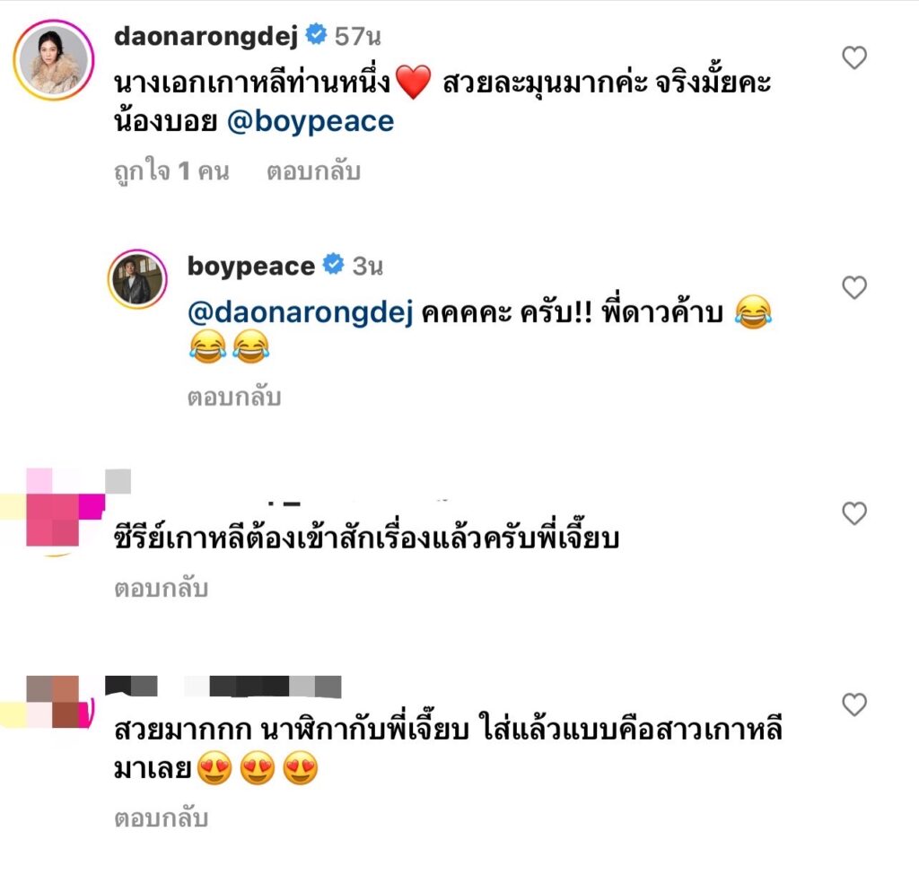 อย่างล่าสุด “เจี๊ยบ พิจิตตรา” ได้ลงภาพสวยหวานละมุนผ่านทางอินสตาแกรม กับลุคในสวยจึ้ง สวยจัง เหมือนดั่งนางนางเอกเกาหลีเกาใจชนิดที่สวยสะกดทุกสายตา จนแฟนคลับอดใจไม่ไหวต่างเข้ามากดไลก์รวมไปถึงคอมเมนต์แบบรัวๆ อาทิ นางเอกเกาหลีท่านหนึ่ง สวยละมุนมาก , ซีรีส์เกาหลีต้องเข้าสักเรื่องแล้ว , สวยมาก นาฬิกากับพี่เจี๊ยบใส่แล้วแบบคือสาวเกาหลีมาเลย , พี่เจี๊ยบ สวยมาก มีความเกาหลีเกาใจมาก ส่วนด้านคุณสามี บอย อนุวัฒน์ ก็เข้าอวยยศภรรยา แฟนใครครับ สวยขนาดนี้ (พร้อมอิโมจิรูปหัวใจ) สวยแบบปฏิเสธไม่ได้เพราะเธอใช้คำว่าสวยได้เปลืองมากจริงๆ