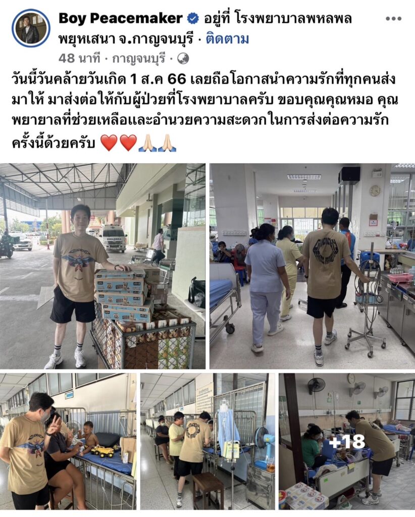 บอย อนุวัฒน์ โพสต์ข้อความไว้ว่า “วันนี้วันคล้ายวันเกิด 1 ส.ค 66 เลยถือโอกาสนำความรักที่ทุกคนส่งมาให้ มาส่งต่อให้กับผู้ป่วยที่โรงพยาบาลครับ ขอบคุณคุณหมอ คุณพยาบาลที่ช่วยเหลือเเละอำนวยความสะดวกในการส่งต่อความรักครั้งนี้ด้วยครับ ❤️❤️🙏🏻🙏🏻