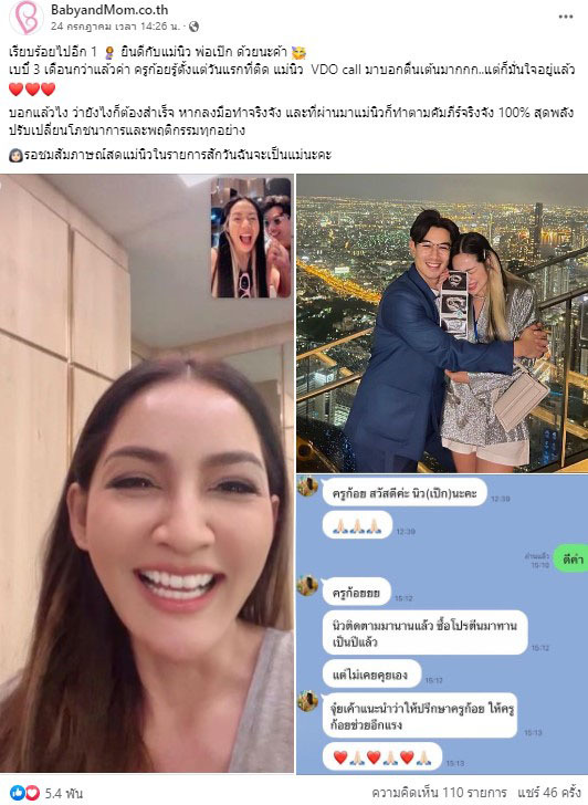 ในที่สุดก็ได้เป็นแม่คุณแม่สมใจ ต้องขอแสดงความยินดีกับคุณแม่ป้ายแดง “นิว นภัสสร ภูธรใจ ” ที่พยายามมีลูกมานานถึง 6 ปี และผิดหวังมาหลายครั้ง จนกระทั้งมีโอกาสได้พูดคุยกับ “จุ๋ย วรัทยา นิลคูหา” โดย “จุ๋ย” ได้แนะนำให้ปรึกษา “ครูก้อย นัชชา ลอยชูศักดิ์” ให้ครูก้อยช่วยอีกแรง เนื่องจาก “จุ๋ย” ก็เคยปรึกษาเตรียมตั้งครรภ์กับ “ครูก้อย”และประสบความสำเร็จมาแล้ว ซึ่งหลัง “นิว” เข้าโปรแกรมปรับโภชนาการเตรียมผนังมดลูกตามคัมภีร์ครูก้อย 2 เดือน ก่อนเข้าสู่กระบวนการย้ายตัวอ่อนทำให้ได้ผนังมดลูกสวยตามเกณฑ์ จนคุณหมอต้องชม และประสบความสำเร็จตั้งครรภ์หลังเตรียมตัวมาอย่างดี