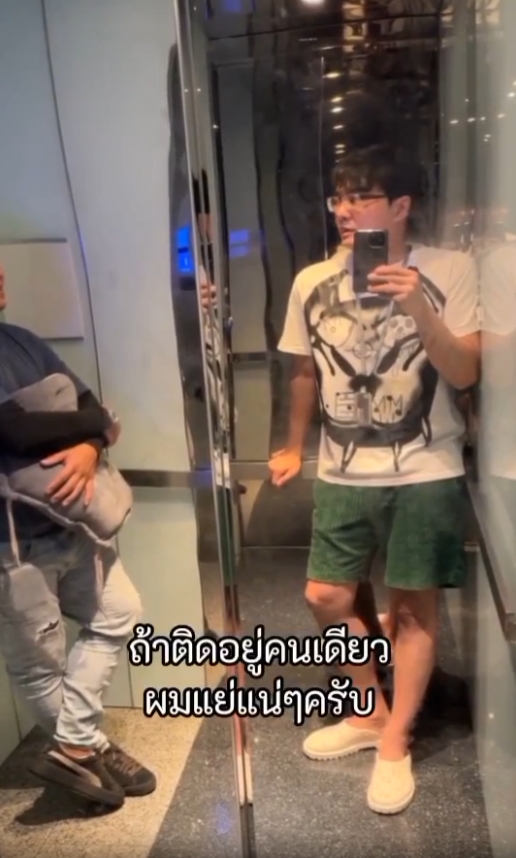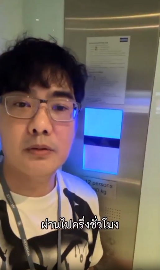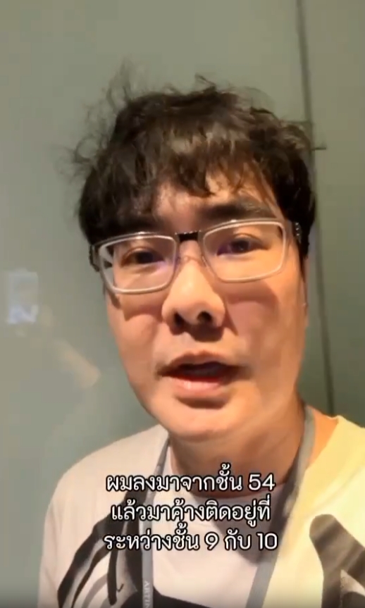 ทั้งนี้ ยังระบุแคปชั่นใต้คลิปวิดีโอว่า ‘Stuck in the elevator!!! ติดอยู่ในลิฟต์ 1/2 ชม ลงมาจากชั้น 54 แล้วติดอยู่ระหว่างชั้น10กับ9 เป็นประสบการณ์ใหม่ หัวฟูเลย เพิ่งมีสติถ่ายตอนมีคนมาช่วยนี่แหละถึงหัวเราะได้ #elevator’
