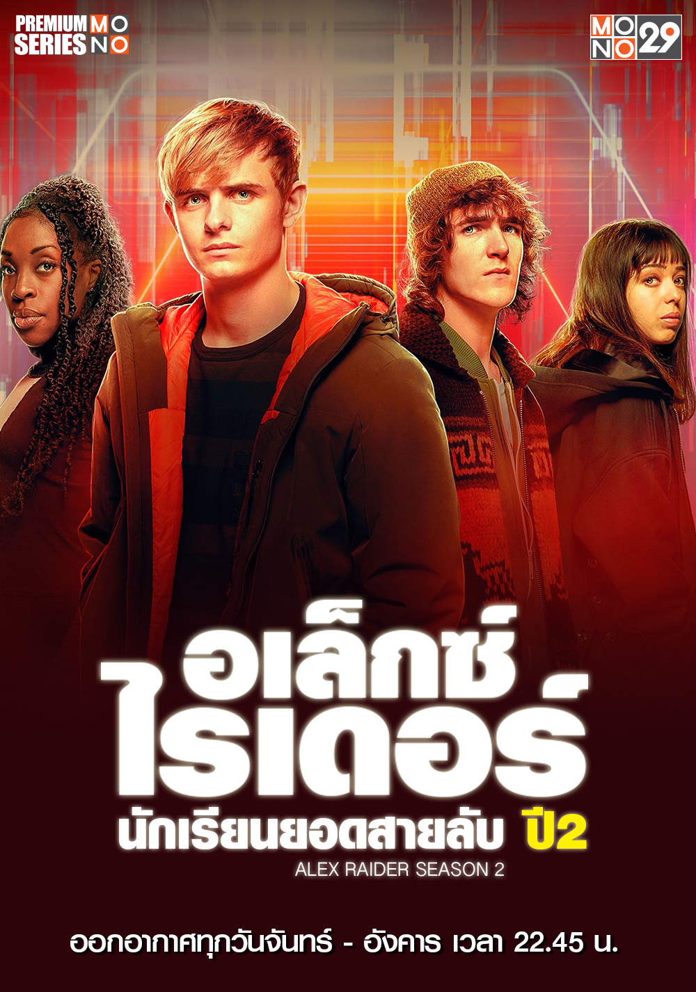 กลับมาบู๊จับตายอีกครั้ง สำหรับสายลับวัยรุ่นตัวท็อประดับ พรีเมี่ยม ซีรีส์ (Premium Series) ทางช่อง MONO29 ล่าสุดเอาใจคอซีรีส์แอคชั่นภาคต่อไม่ให้รอนาน ในเรื่อง “อเล็กซ์ ไรเดอร์ นักเรียนยอดสายลับ ปี 2 (Alex Rider Season 2)”