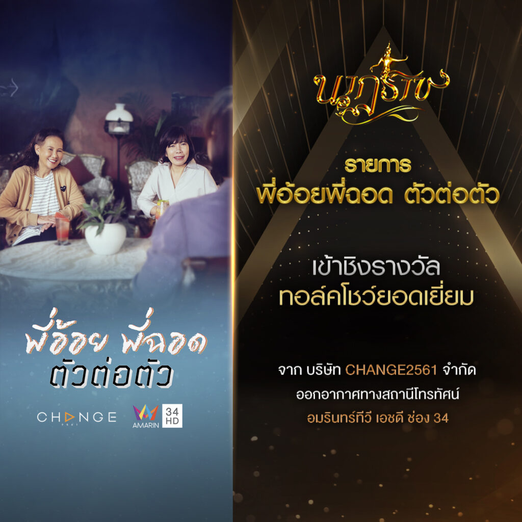โดยงานนี้ทาง CHANGE2561 ก็ได้ขอแสดงขอบคุณสมาพันธ์สมาคมวิชาชีพวิทยุกระจายเสียงและวิทยุโทรทัศน์ ที่ให้เกียรติ รายการ Club Friday Show, รายการ พี่อ้อยพี่จอด ตัวต่อตัว , ละคร ฟ้า ทาน ตะวัน และละคร เพลงบินใบงิ้ว ร่วมเข้าชิงรางวัล และขอแสดงความยินดีกับทุกผลงานที่ได้ร่วมเข้าชิงมา ณ ที่นี้ด้วยค่ะ