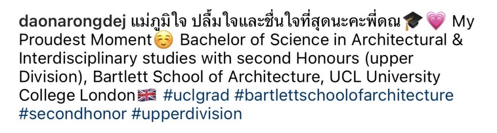บินข้ามฟ้าไปเรียนถึง University College London ประเทศอังกฤษจนสามารถคว้าใบปริญญามาฝากคุณพ่อคุณแม่ได้สำเร็จไปแล้วสำหรับ “น้องดณ ณดณ ณรงค์เดช” ที่ล่าสุดเพิ่งเข้าพิธีรับปริญญาบัตรจากคณะ The Bartlett school of Architecture ด้วยความชื่นมื่นจากครอบครัวที่พร้อมใจกันไปร่วมแสดงความยินดี งานนี้”คุณแม่ดาว พอฤทัย ณรงค์เดช” ได้โพสต์คลิปพร้อมข้อความสุดซึ้งถึงลูกชายคนโตไวด้วยว่า