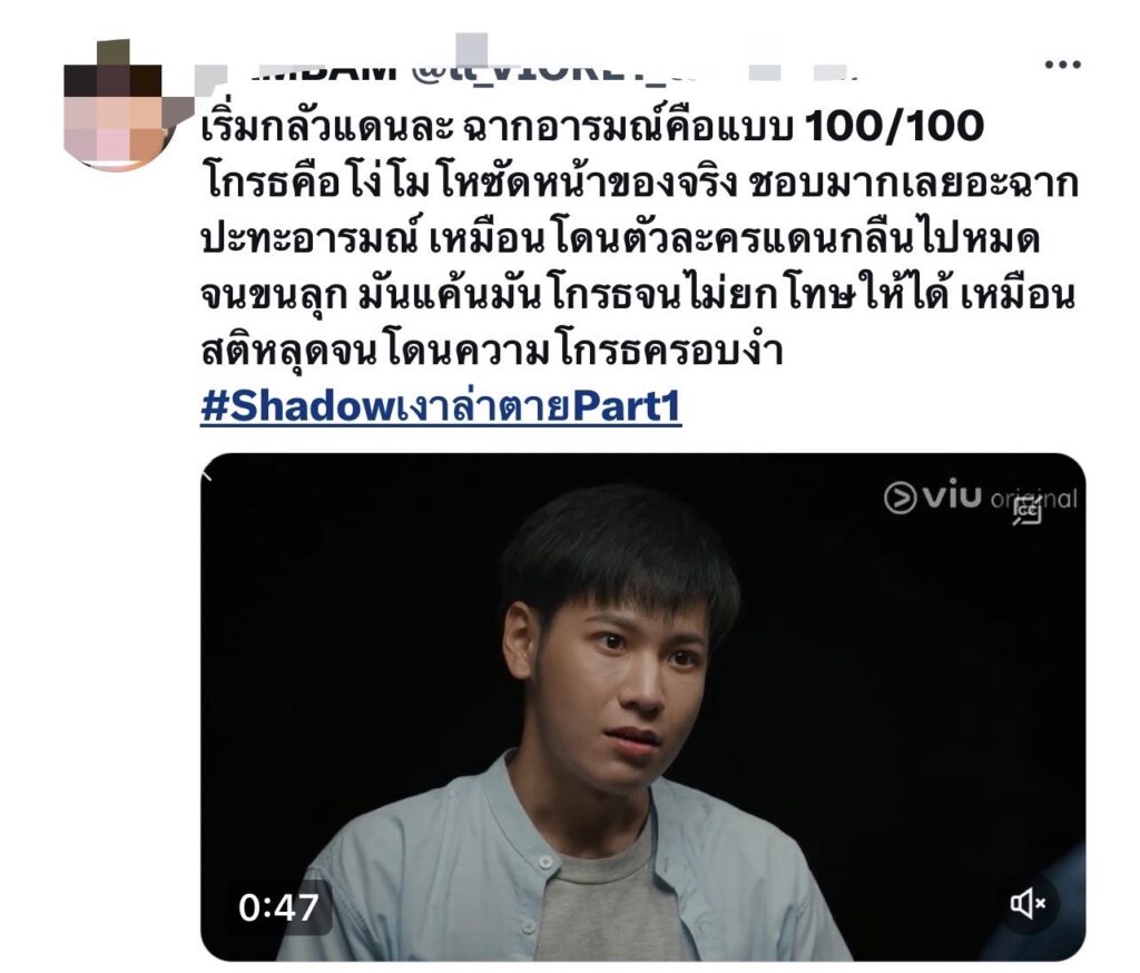 เป็นกระแสให้ได้ฮือฮาในโลกโซเชียล โดยเฉพาะทวิตเตอร์นี่เดือดสุดๆทีเดียว สำหรับคืนวันฮาโลวีน (31 ตุลาคม) ที่ผ่านมาเมื่อ Viu Original ได้ปล่อยซีรีส์วัยรุ่นสุดผวาอย่าง “SHADOW เงา/ล่า/ตาย” ที่ขนทัพนักแสดงวัยรุ่น สิงโต-ปราชญา เรืองโรจน์ ,ฟลุ้ค-ณธัช ศิริพงษ์ธร , เฟียต-ภัชทา จันทร์เงิน , ท็อป-ปฐมภพ พูลกลั่น (ท็อป LAZYLOXY), ปูน มิตรภักดี, ใยไหม-ชินารดี พร้อมนักแสดงคุณภาพมากฝีมือ อั๊ต-อัษฎา พานิชกุล และ พีท พล มาพลิกบทบาทสวมคาแรกเตอร์ในแบบที่คาดให้แฟนๆได้รับชมกันแบบรัวๆถึง 7 ตอนรวด ทำให้เกิดปรากฏการณ์ #Shadowเงาล่าตายPart1 ขึ้นเทรนด์ทวิตเตอร์อันดับ 3 ทันทีกับเรื่องราวโรงเรียนประจำชายล้วนที่มีแต่ปมอันซับซ้อนที่ทุกแง่มุมมีแต่ความหลอน เมื่อเด็กนักเรียนคนหนึ่งหายตัวไปอย่างเป็นปริศนาและเงาลึกลับได้ปรากฏขึ้นในความฝันของเด็กนักเรียนคนใหม่ แดน รับบทโดย สิงโต-ปราชญา นำทีมสุดผวาเผชิญหน้า “เงาหลอน” พาคนดูลุ้นกันแบบจิกหมอนจนพูดกันสนั่นโลกโซเชียลถึงกับเอ่ยปากชื่นชม