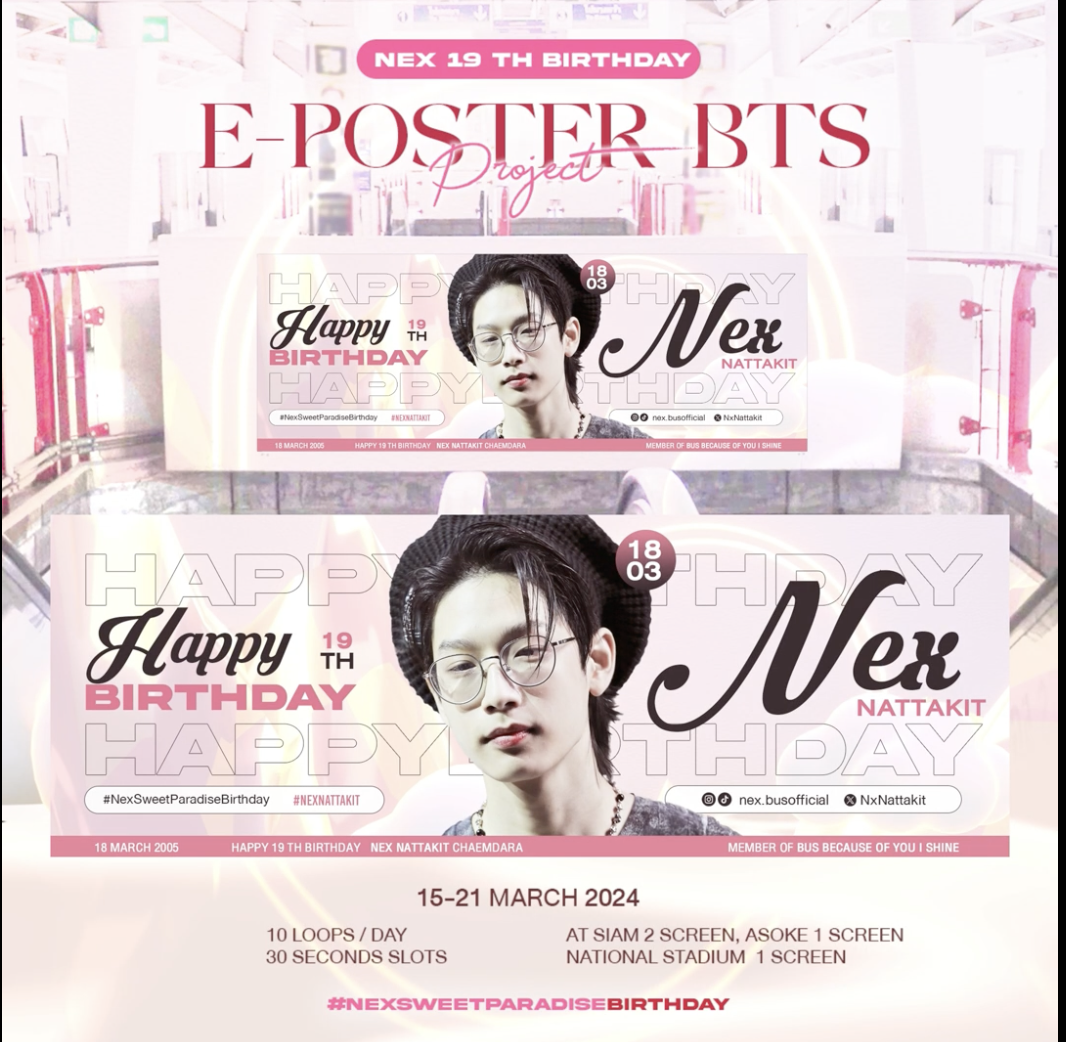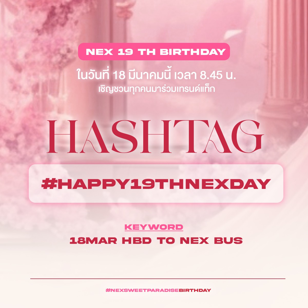 และทั้งหมดนี้ก็เป็นโปรเจกต์บางส่วนจากเหล่า BEUS ของ เน็กซ์ BUS ที่ทางเรารวบรวมมาให้ ส่วนใครที่อยากร่วมอวยพรวันเกิด สามารถใช้ #.HAPPY19THENEXDAY โดยเริ่มใช้ในวันที่ 18 มีนาคม2567 เวลา 08:45 เป็นต้นไป และสามารถเข้าไปดูรายละเอียดเพิ่มเติมได้ที่ #NexSweetParadiseBirthday หรือ @NEXLAND_ ได้เลยน๊าาา สำหรับใครที่ไปเก็บโปรเจกต์สุดพิเศษนี้มาแล้ว อย่าลืมเอามาอวดกันนะ