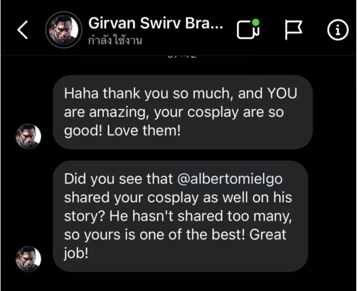 แต่ที่เรียกว่าเป็นไวรัลอย่างแท้จริงที่สาวตู่ได้ทำไว้คงจะไม่พลาดกับ การคอสเพลย์ของ ตู่ Soundtiss ก็ได้เป็นกระแสตัวละคร CG อย่าง ซีรีส์ Netflix Siren ในตอน JIBARO เหมือนมากจนไปสะดุดตาผู้กำกับ อัลแบร์โต มิเอลโก ก่อนฆีบาโรเวอร์ชันนี้จะได้ออกสู่สายตาชาวโลก โดยเขาก็ได้แชร์ภาพและโพสต์ลงบน IG Story ของตัวเอง สร้างความตื่นเต้นและภูมิใจให้ทั้ง ตู่ Soundtiss เองรวมถึงเหล่าแฟนคลับที่ติดตามเธอที่ให้เสียงเสียงตอบรับเป็นอย่างดี และทุกคนที่มาคอมเมนต์ต่างบอกเป็นเสียงเดียวกันว่า ปังมาก มันเหมือนมากแม่!