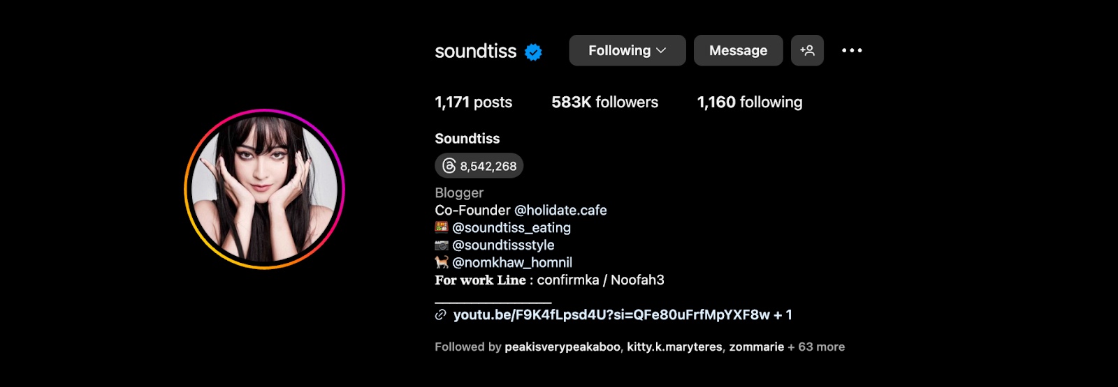 ไม่ว่าใครก็คงคุ้นหูกับประโยค “ใครไม่ติส แต่ซาวติส” ก็มาจากสาวตู่ Soundtiss (อ่านว่า “ตู่ ซาวติส”) บิวตี้บล็อกเกอร์ มาพร้อมกับยอดผู้ติดตามเหยียบล้านคนบนยูทูบ บิวตี้บล็อกเกอร์สาย Transformation