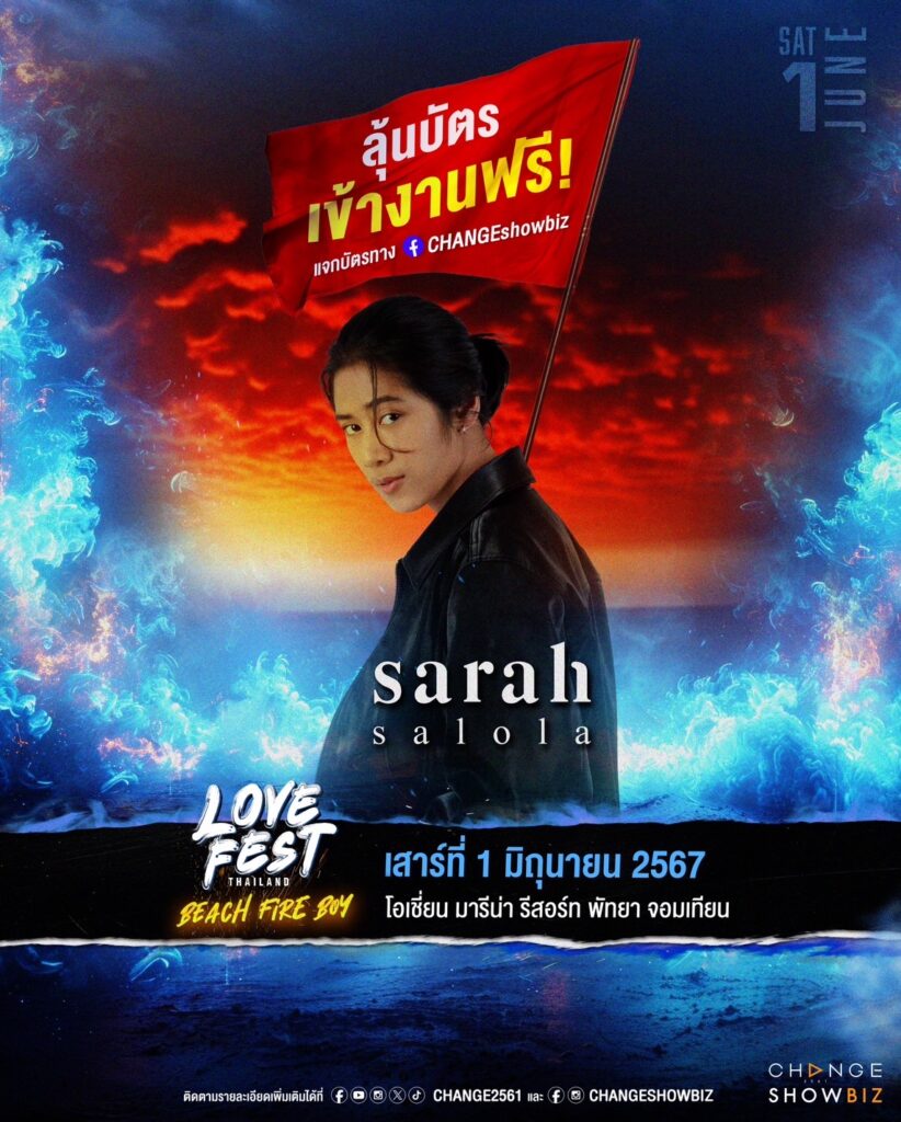ก็เพราะว่างานนี้คือ #เทศกาลความรักริมทะเลที่ใหญ่ที่สุดในประเทศไทย ผู้จัดคอนเสิร์ตอย่าง “พี่ฉอด สายทิพย์ มนตรีกุล ณ อยุธยา” CEO บริษัท CHANGE2561 จำกัด มีหรือจะไม่เล่นใหญ่งานนี้ก็จัดให้ไปเลย 2 เวที MINI STAGE มาฟัง..เพลงรักสไตล์สาวเท่จาก #SarahSalola แถมได้มาคุย..ปรึกษาปัญหาหัวใจกับ #พี่อ้อยพี่ฉอด กันแบบเอ็กซ์คลูซีฟกันที่เวทีเล็กในบรรยากาศริมทะเลลมเย็นๆ ส่วนเวทีใหญ่ MAIN STAGE ปีนี้ดูทรง LINE UP ศิลปินไม่ได้มาดับร้อน แต่มาเพิ่มอุณหภูมิให้ ร้อนนนน…..!!! กับศิลปินตัวท็อปที่ CHANGEshowbiz ขนมาแน่นเวที “ TILLY BIRDS – INDIGO – PPROXIE – YOUNGOHM ”