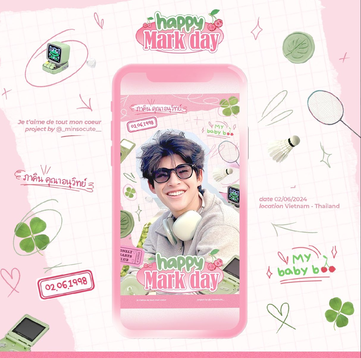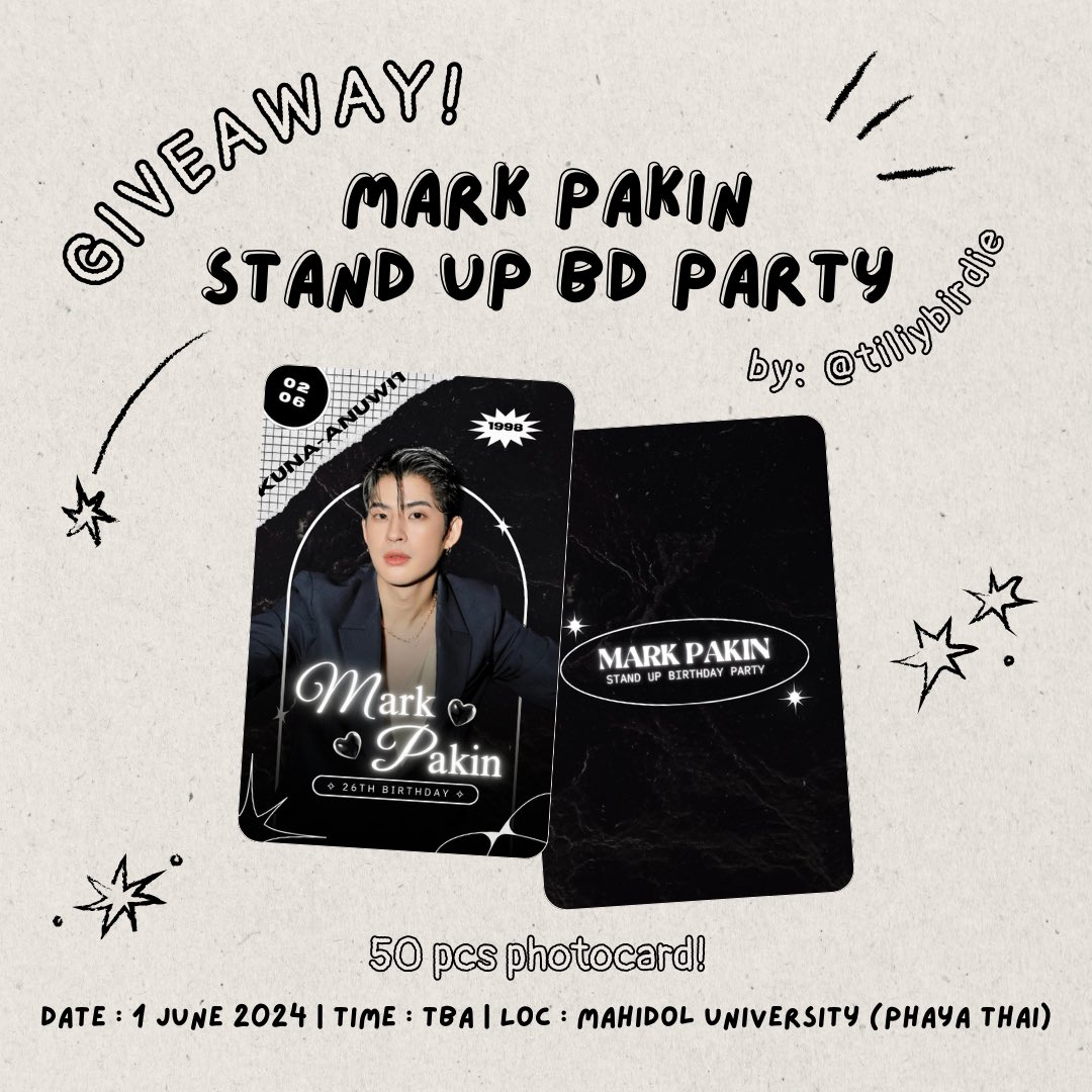 2 มิถุนายน 2567 ร่วมอวยพรวันเกิดให้กับศิลปินคนโปรด มาร์ค ภาคิน คุณาอนุวิทย์ ( Mark Pakin Kunaanuwit ) เนื่องในโอกาสครบรอบวันเกิด 26 ปี ของพี่พระเอก และนอกจากต้าวมาร์คของเราจะเติบโตขึ้น วันเกิดปีนี้ เหล่าแฟน ๆ ก็มีเซอร์ไพรส์ กับโปรเจกต์วันเกิดสุดยิ่งใหญ่ให้เขาคนนี้ด้วย