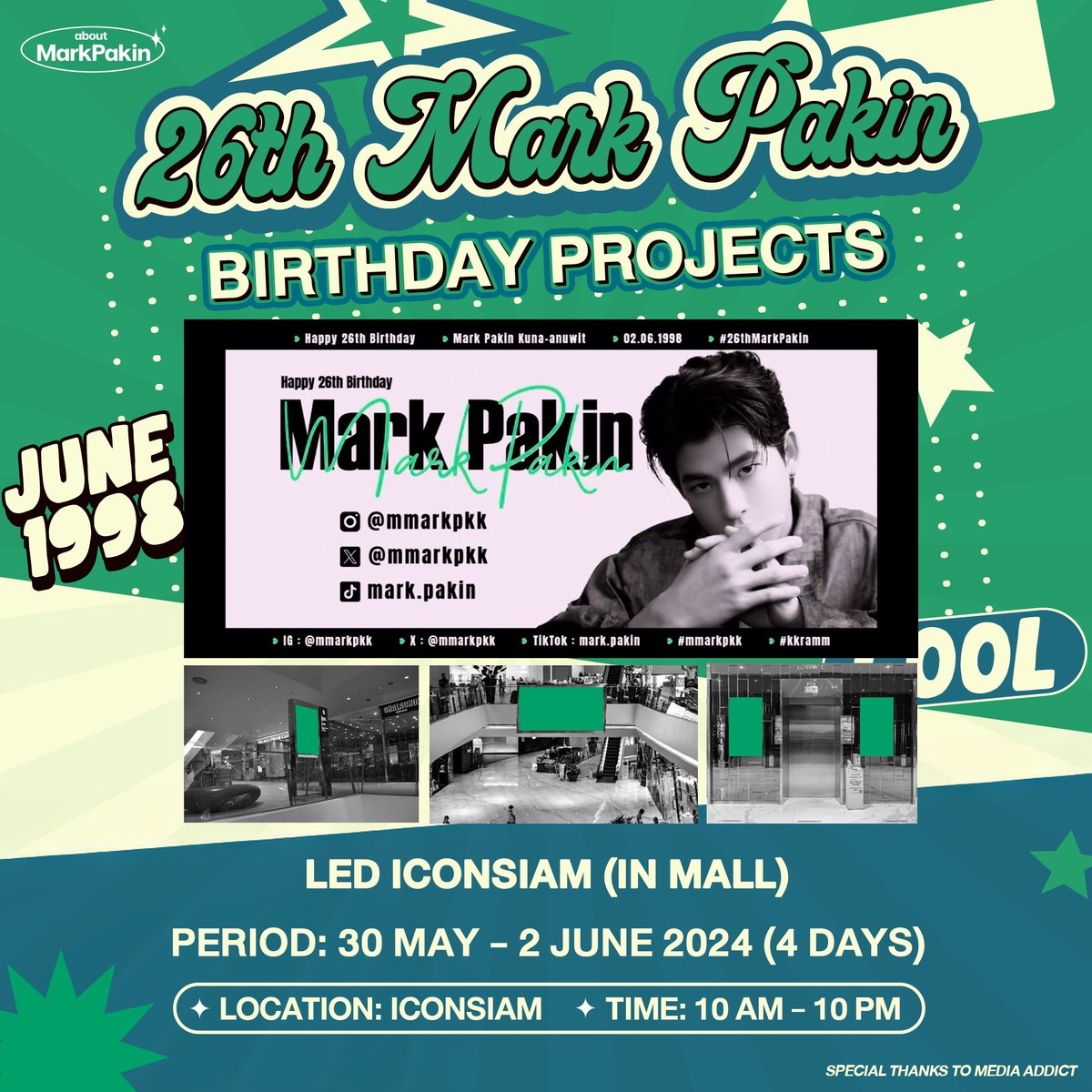 และในวันเกิดของมาร์ค ภาคินปีนี้ ทางเราขอเป็นส่วนหนึ่งในความทรงจำครั้งนี้ ด้วยการอวยพรให้มาร์ค ภาคินเจอเส้นทางที่ดี และ สดใส ขอให้มีแต่คนรัก คนเอ็นดู คนสนับสนุน และ ขอให้มาร์ค ภาคินถูกค้นพบมากขึ้นกว่าเดิม ค่อย ๆ เติบโต ไปทีละก้าวนะคนเก่ง … ขอบคุณมาร์ค ภาคินที่เกิดมาให้รักนะ ❤︎
