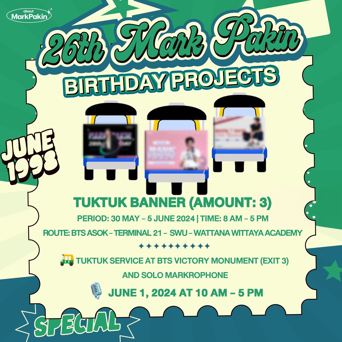 และทั้งหมดนี้ก็เป็นโปรเจกต์บางส่วนจากแฟนคลับของมาร์ค ภาคิน หรือ พี่พระเอก ที่ทางเรารวบรวมมาให้ ส่วนใครที่อยากร่วมอวยพรวันเกิด สามารถใช้ #SuperMARKday26th โดยเริ่มใช้ในวันที่ 2 มิถุนายน 2567 เวลา 00.00 น. (BKK) เป็นต้นไป และสามารถเข้าไปดูรายละเอียดเพิ่มเติมได้ที่ #MarkPakinBDproject2024 หรือ @aboutmarkpakin ได้เลยน๊าาา สำหรับใครที่ไปเก็บโปรเจกต์สุดพิเศษนี้มาแล้ว อย่าลืมเอามาอวดกันนะ
