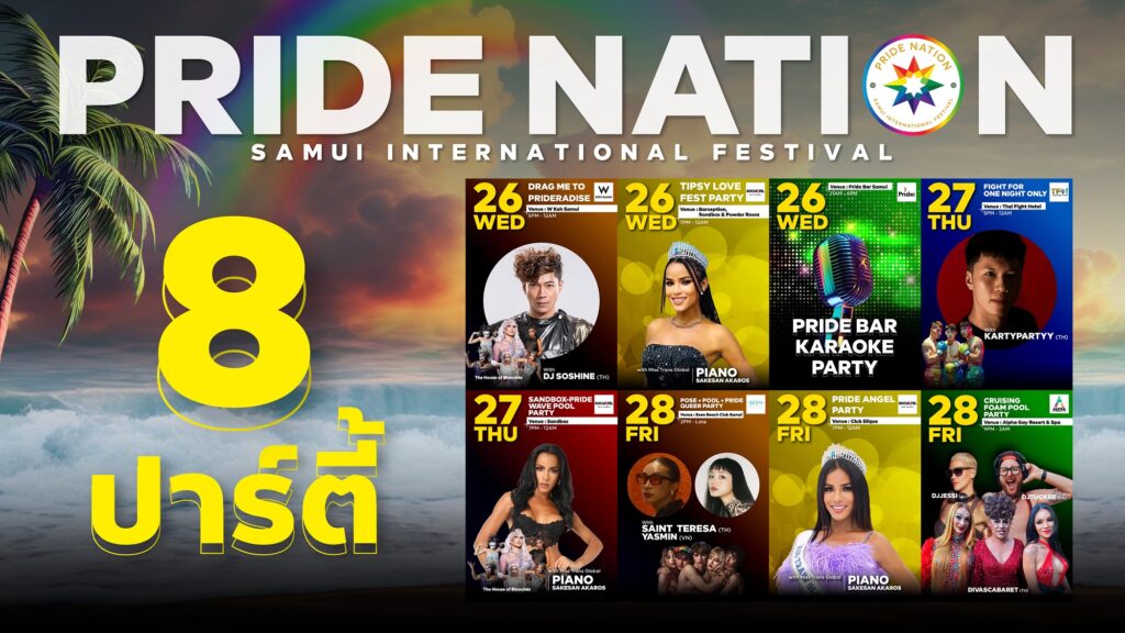 ล็อกคิวแล้วเตรียมปัง!! เช็คลิสต์ 8 ปาร์ตี้ 4 กิจกรรมสุดชิคงาน PRIDE NATION SAMUI 2024 อัดแน่นทั้งสาระและความบันเทิง