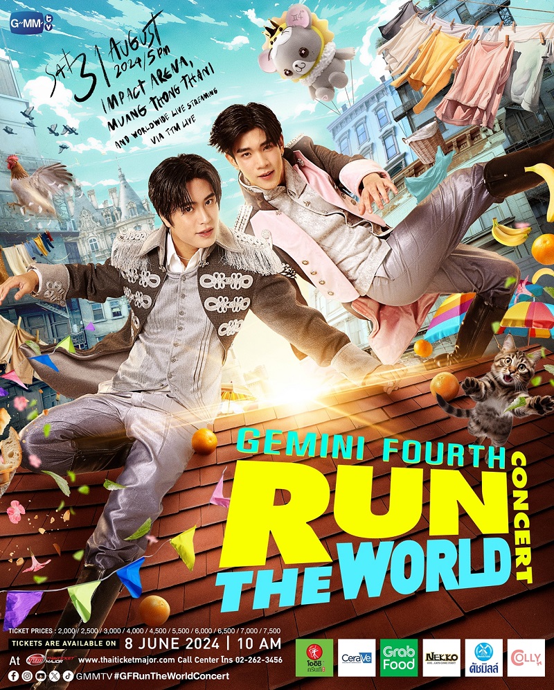 ซึ่งคอนเสิร์ต GEMINI FOURTH RUN THE WORLD CONCERT จะจัดในวันที่ 31 สิงหาคม – 1 กันยายน 2567 ณ อิมแพ็ค อารีน่า เมืองทองธานี ราคาบัตรเริ่มต้นที่ 1,200 บาท
