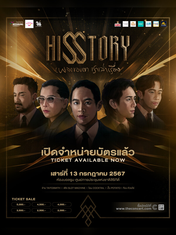 โดย HISSTORY เพลงของเขา เราเล่าเรื่อง จะจัดขึ้นในวันเสาร์ที่ 13 กรกฎาคม 2567 เวลา 19.00 น. ณ ห้องบอลรูม ศูนย์การประชุมแห่งชาติสิริกิติ์ บัตรราคา 2,000 / 2,500 / 3,500 / 4,000 / 4,500 และ 5,000 บาท