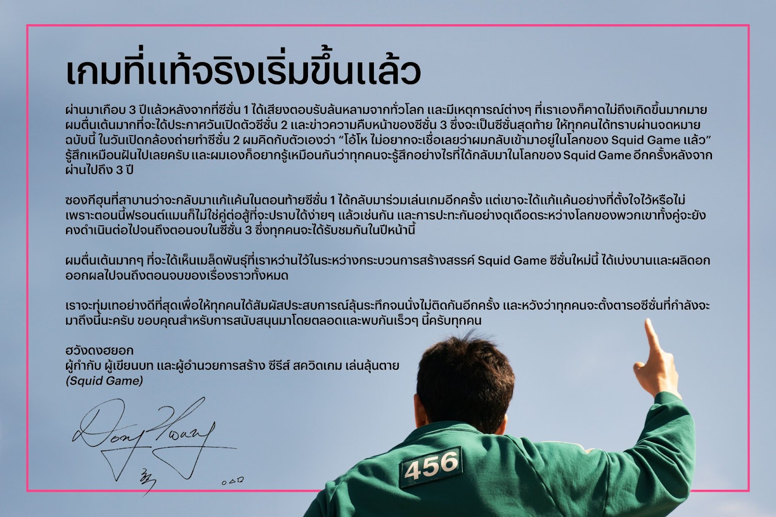 เกมที่แท้จริงเริ่มขึ้นแล้ว! สควิดเกม เล่นลุ้นตาย (Squid Game) ซีซั่น 2 สตรีมพร้อมกันทั่วโลก 26 ธันวาคม 2024 พร้อมประกาศซีซั่นสุดท้าย ปี 2025