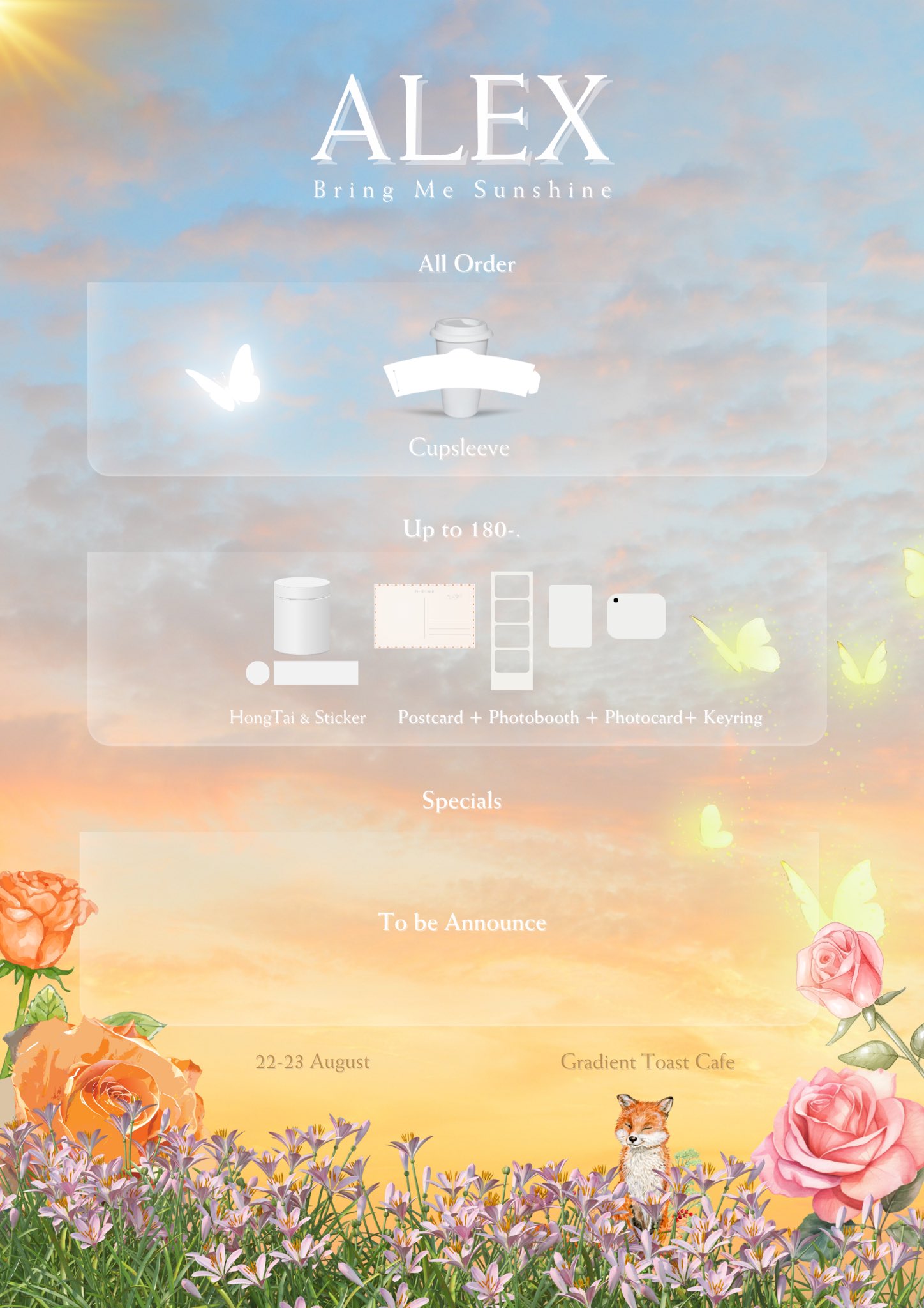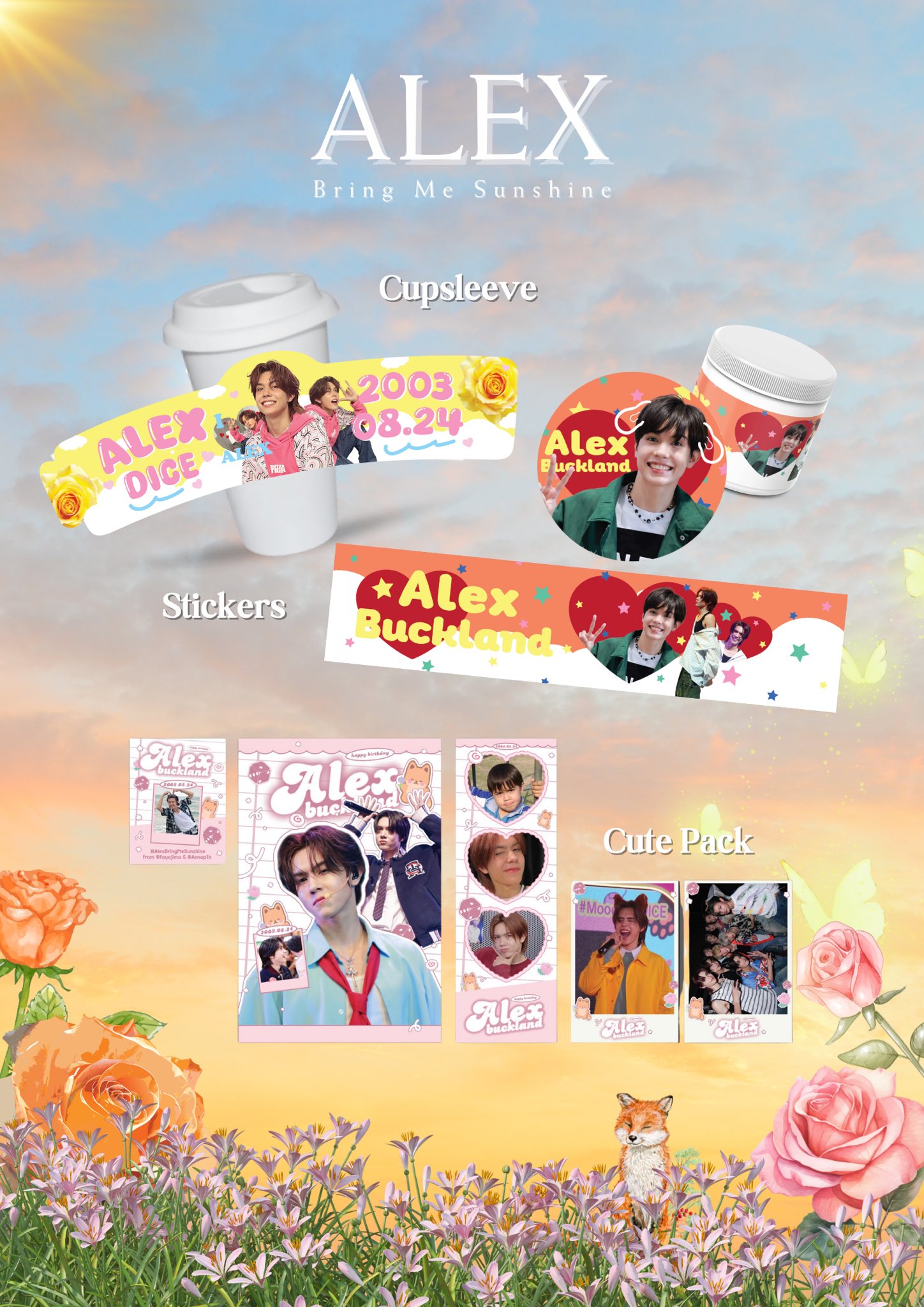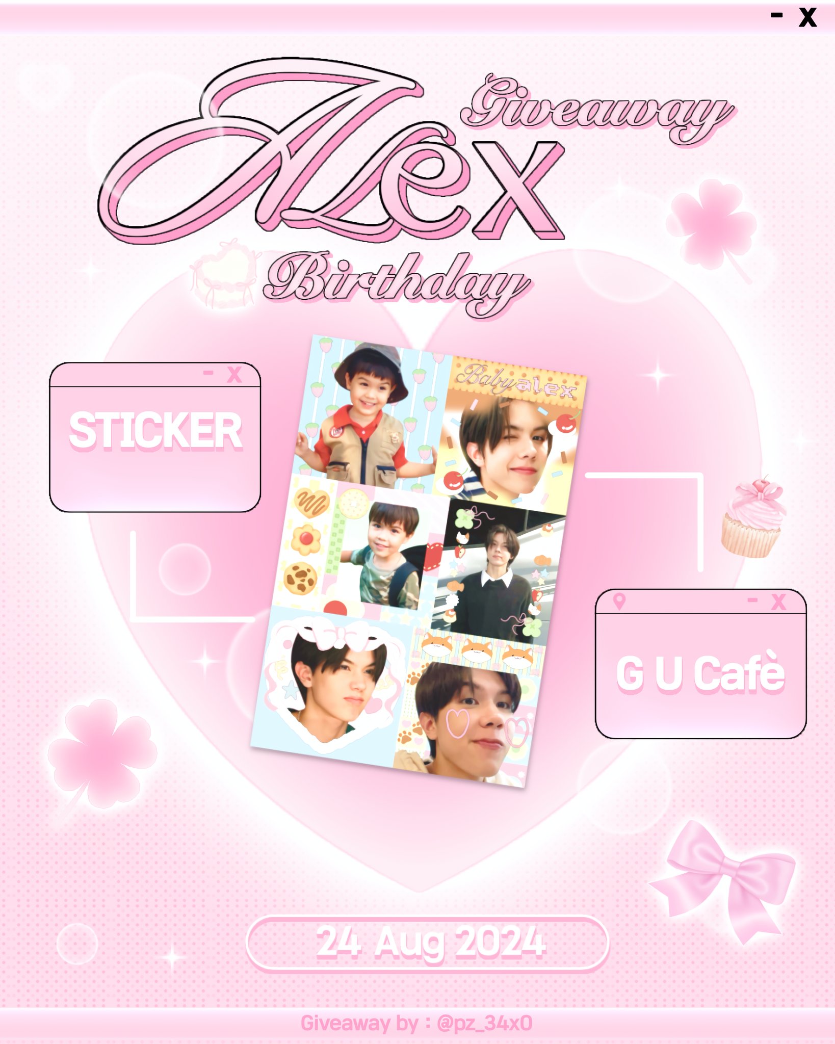 : ซื้อเครื่องดื่มราคา 105 บาทขึ้นไป พร้อม ALEX’S BD custom cake ได้รับ cup sleeve, postcard, photocard, sticker set