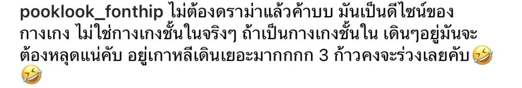 ล่าสุด “ปุ๊กลุก” ได้ออกมาชี้แจงถึงดราม่าดังกล่าว พร้อมแนบตัวอย่างโมเดล และเขียนแคปชั่นว่า “ไม่ต้องดรามาแล้วค้าบบ มันเป็นดีไซน์ของกางเกง ไม่ใช่กางเกงชั้นในจริงๆ ถ้าเป็นกางเกงชั้นใน เดินๆ อยู่มันจะต้องหลุดแน่ครับ อยู่เกาหลีเดินเยอะมากกกก 3 ก้าวคงจะร่วงเลยครับ”