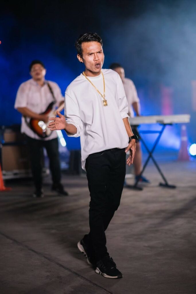 เตรียมติดต่อ “โรเบิร์ต สายควัน” มาเป็นพระเอกเอ็มวี แต่อีกฝ่ายเสียชีวิตก่อนที่จะมีการพูดคุยกัน งานนี้จัดเต็มใช้แดนซ์เซอร์ของ “ปิ๋ม ซีโฟร์” แซบเวอร์ “ถ่ายเอ็มวีเรียบร้อยแล้วครับ เพลงปล่อยใน YouTube แล้ว ตอนแรกพระเอกเอ็มวีเราวางพี่โรเบิร์ต สายควัน ไว้ แต่พี่เขาจากไปเสียก่อน เหตุผลที่อยากร่วมงานกับพี่โรเบิร์ตเพราะเนื้อหาเพลงด้วย แล้วพี่เขาก็เป็นลูกศิษย์หลวงพี่น้ำฝนด้วย ผมไม่ได้มองคนอื่นไว้แทนพี่เขาเลย ผมก็เลยเล่นเอ็มวีนี้เองครับ ส่วนแดนซ์เซอร์เป็นแดนซ์เซอร์ของพี่ปิ๋ม ซีโฟร์ น้องๆ เซ็กซี่มาก เพลงนี้นอกจากนักร้องนำและนักดนตรีจะเป็นเด็กวัดแล้ว คนที่เล่นในเอ็มวีก็เป็นเด็กวัดหมดเลย คนที่ทำให้ก็เป็นลูกศิษย์วัดทั้งนั้นครับ” ดีกรีไม่ธรรมดาเคยประกวดร้องเพลงรายการมาสเตอร์คีย์ เป็นแชมป์ 2 สมัย “ผมเคยไปประกวดร้องเพลงรายการศึกวันดวลเพลง ช่องวัน 31 เมื่อหลายปีก่อนแต่ไม่ชนะครับ หลังจากนั้นผมก็ได้ไปประกวดร้องเพลงในรายการมาสเตอร์คีย์ ช่อง 3 ซีซั่นนั้นผมไปเป็นวงกับเพื่อน 4 คนครับ วงเราชนะ ครั้งนั้นผมร้องเพลง สาริกาไร้รัง ซึ่งเป็นเพลงที่ค่อนข้างสร้างชื่อให้กับผม แล้วทางรายการบอกว่ายอดวิวเยอะที่สุดในซีซั่นนั้นเลย เป็นเจ้าของสถิติยอดวิวสูงสุดในซีซั่นนั้นครับ ผมว่าคงเป็นเพราะบรรยากาศในรายการสนุกด้วยคนเลยดูเยอะ” “วันนั้นคณะกรรมการมีพี่เอ(ไชยา มิตรชัย), พี่ตั๊ก(ศิริพร อยู่ยอด) และ พี่คัฑลียา มารศรี ซึ่งพี่ตั๊กแซวผมว่า ทรงอย่างนี้ไม่เสพก็ขาย (หัวเราะ) ผมก็ฮาๆ ไม่โกรธพี่ตั๊กเลยเพราะไม่ใช่ครั้งแรกที่ผมโดนแซวแบบนี้ ส่วนพี่เอก็บอกว่า หน้าตาไม่น่าร้องเพลงเพราะ (หัวเราะ) การที่โดนแซวแบบนี้บ่อยๆ ผมไม่ได้มองว่าเป็นปมด้อย แต่มองว่าเป็นจุดขายของตัวเองมากกว่า เราต้องยอมรับความจริงว่าเราเกิดมาเป็นแบบนี้ แล้วหลังจากนั้นผมก็ตัดสินใจไปประกวดรายการมาสเตอร์คีย์อีกครั้ง ซึ่งก็ชนะได้เป็นแชมป์สมัยที่ 2 ครับ แต่ครั้งนี้ไปคนเดียว ไม่ได้ไปเป็นวงเหมือนครั้งแรก เพลงที่ผมร้องประกวดคือ เพลง ตชด.ขอร้อง คณะกรรมการมีพี่เอ ไชยา, พี่ตั๊ก ศิริพร และ พี่รงค์(จาตุรงค์ มกจ๊ก) ซึ่งพี่เอกับพี่ตั๊กเขาจำได้ว่าผมเคยมาแล้วรอบนึง” ดังจากการออกรายการทีวี แถมเป็นแชมป์ 2 สมัย แต่ไม่มีใครให้โอกาสชวนไปเป็นนักร้อง เพราะหน้าตาเหมือนคนติดยา “พอออกรายการทีวีทำให้มีคนรู้จักผมมากขึ้น เวลาไปไหนมาไหนคนจำได้เข้ามาทัก งานจ้างไปร้องเพลงก็เยอะขึ้น เขาบอกว่าเห็นไปออกรายการทีวีเลยจ้างเราไปร้องเพลง แต่ไม่เคยมีแมวมองมาชวนไปเป็นนักร้อง คง