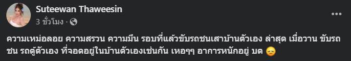 ช็อก! “ใบเตย สุธีวัน” เล่าเหตุการณ์มีอาการเหม่อ ขับรถชนเสา-รถตู้ในบ้าน