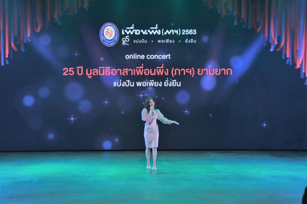 ณ สตูดิโอบ้านริก ได้จัดงาน คอนเสิร์ต 25 ปี “เพื่อนพึ่ง (ภาฯ) 2563” ภายใต้แนวคิด “แบ่งปัน พอเพียง ยั่งยืน” ซึ่งเป็นการจัดขึ้นในรูปแบบเสมือนจริงผ่านสื่ออิเล็กทรอนิกส์เป็นครั้งแรก โดยมีวัตถุประสงค์เพื่อเป็นการเผยแพร่การดำเนินงานของมูลนิธิฯ และเพื่อสร้างการรับรู้ถึงพันธกิจ และภารกิจของมูลนิธิฯ โดยมี พระเจ้าวรวงศ์เธอ พระองค์เจ้าโสมสวลี กรมหมื่นสุทธนารีนาถ นายกกิตติมศักดิ์ตลอดชีพ และ สมเด็จพระเจ้าลูกเธอ เจ้าฟ้าพัชรกิติยาภา นเรนทิราเทพยวดี กรมหลวงราชสาริณีสิริพัชร มหาวัชรราชธิดา เป็นประธานกรรมการมูลนิธิฯ ทั้งนี้สถานีวิทยุโทรทัศน์ไทยทีวีสีช่อง 3 ได้นำสองนักแสดงสาวสุดสวย “มิ้นท์ นวินดา” และ “แจ็คกี้ ชาเคอลีน” เข้าร่วมงาน โดยภายในงานทั้งสองสาวได้ร่วมร้องเพลงปล่อยพลังเสียงอันไพเราะคนละ 1 เพลง เพื่อเป็นการสร้างรอยยิ้มและขวัญกำลังใจให้กับจิตอาสาทุกคน และผู้ที่กำลังประสบภัยอุทกภัยน้ำท่วม และเป็นอีกหนึ่งตัวแทนที่พร้อมจะช่วยประชาสัมพันธ์กิจกรรมดีๆ ให้แก่ทุกคน โดยรายได้จากการจัดงานจะนำเข้าสมทบทุนมูลนิธิอาสาเพื่อนพึ่ง (ภาฯ) ยามยาก สภากาชาดไทย เพื่อใช้ในการดำเนินกิจกรรมสาธารณกุศลตามวัตถุประสงค์ของมูลนิธิฯ ต่อไป