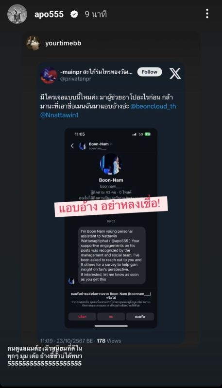 “จริงๆมันมีมาตลอดเลย ให้ทีมงานตรวจสอบ เผยไม่รู้ว่ามีจริงไหม ก็ให้ทีมงานในการจัดการ ส่วนตัวไม่เครียด ปล่อยผ่านไป ไม่มีอะไรจะฝากถึงคนทำ
