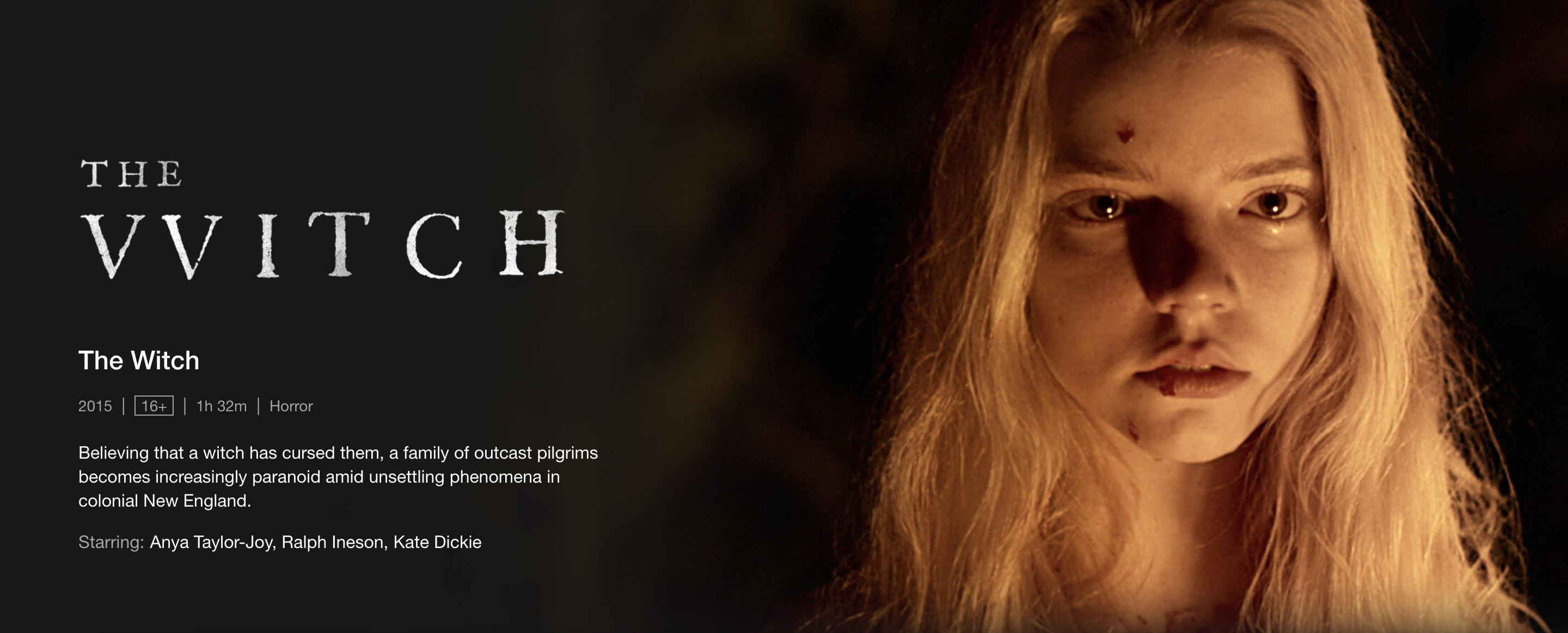 เรื่องย่อ : เรื่องราวของครอบครัวหนึ่งที่ย้ายไปตั้งรกรากที่ New England ในปี 1630 และต้องเผชิญกับเหตุการณ์ประหลาดเหนือธรรมชาติอย่างไร่นาที่ปลูกไว้เหี่ยวแห้งและล้มตาย รวมทั้งลูกชายที่พึ่งเกิดได้หายตัวไป ซึ่งพวกเขาเชื่อว่าเป็นการกระทำของแม่มด และยังเชื่อว่าแม่มดนี้ กลับเป็นคนในครอบครัวคนใดคนหนึ่ง
