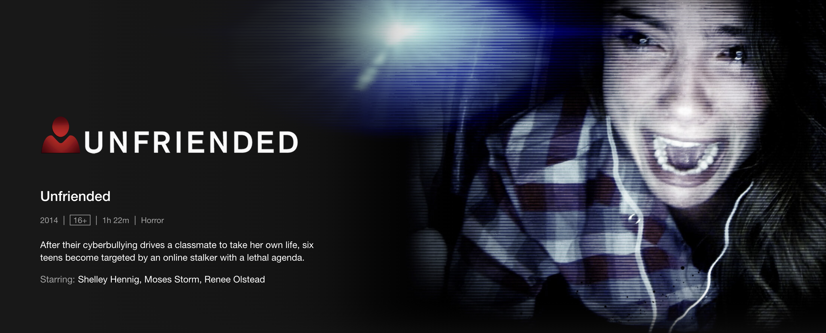 เรื่องย่อ : หนังที่จะทำให้คุณพบกับเรื่องราวสุดสะพรึงที่เกิดขึ้นหน้า Screen ของคอมพิวเตอร์ ระหว่างที่กลุ่มวัยรุ่นได้สไกป์กันอยู่นั้น ก็ได้มีบุคคลลึกลับปรากฏขึ้นมาในแชทกลุ่ม โดยมีเป้าหมายคือตามล้างแค้นคนปล่อยคลิปวิดีโอของลอร่า บาร์น นักเรียนไฮสคูลที่ฆ่าตัวตายเพราะอับอายจากคลิปหลุดเมื่อปีก่อน จากนั้นความสยองจึงเริ่มขึ้น