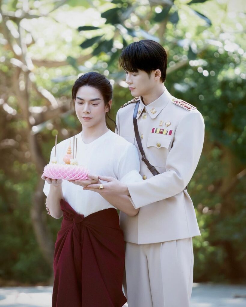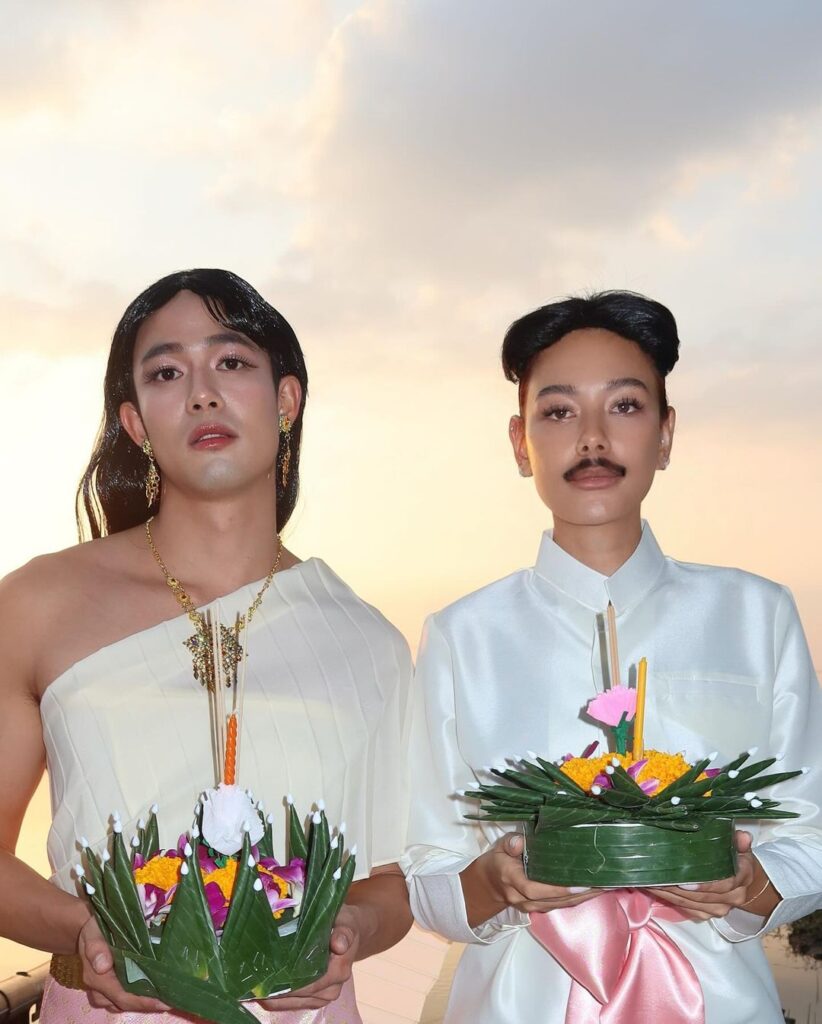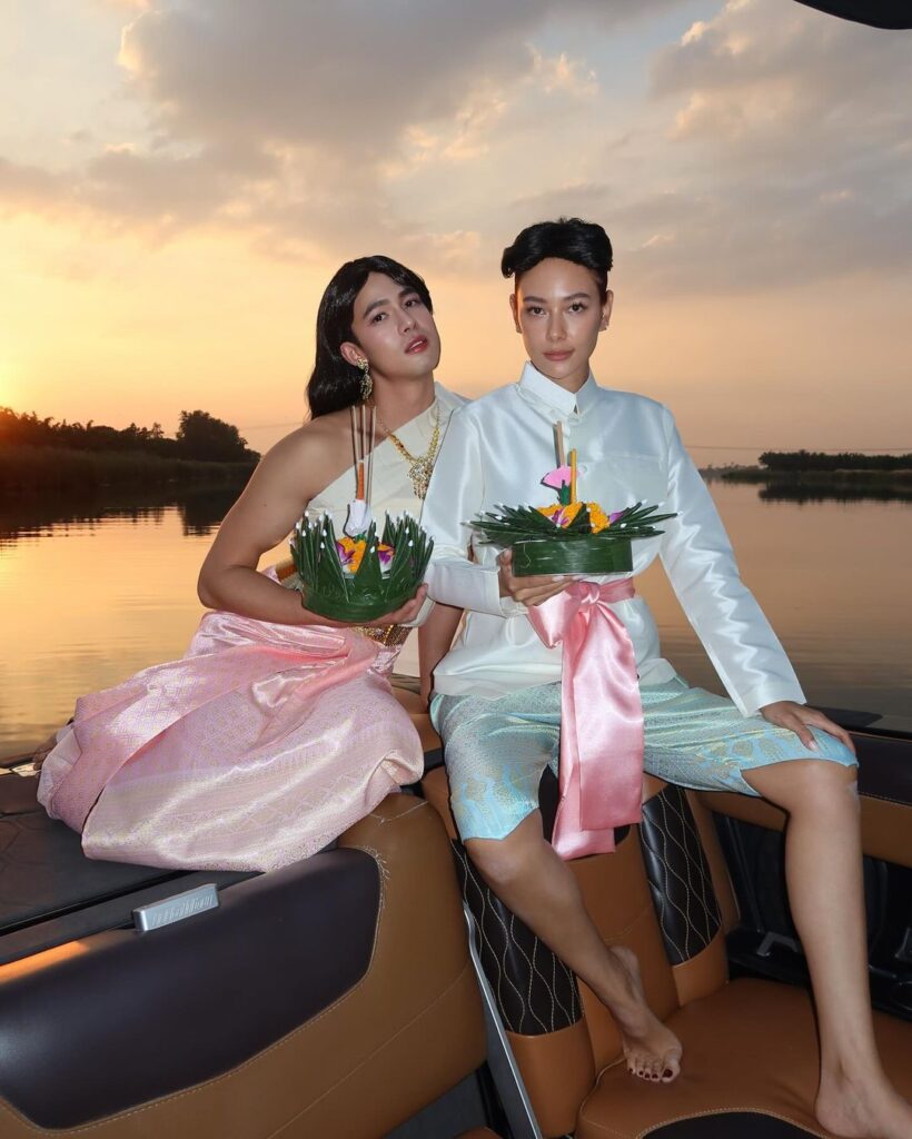ถือเป็นหนึ่งคู่จิ้นที่น่ารัก น่าเอ็นดู สำหรับ “เบ้บ ธนทัต – บิลลี่ ภัทรชนน” โดยทั้งคู่มาในธีมเรียบๆ ชุดย้อนยุค พร้อมถือกระทง บอกเลยว่าน่ารักมาก