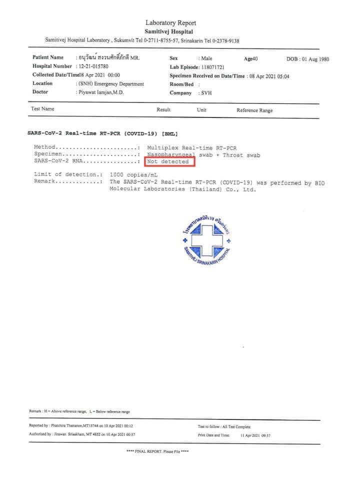 ช่วงต้นเดือนผมได้ไปพบเจอคนมาพอสมควร เลยไปตรวจเพื่อความสบายใจ ของตนเอง ของคนในครอบครัว และของผู้คนที่ผมได้ไปพบเจอมา