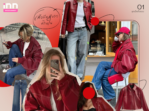 ลุคแจ็คเก็ตหนังสีแดง