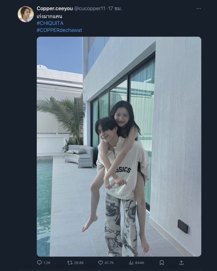 อีกหนึ่งหนุ่มหน้าตาน่ารัก เสียงดี ที่มีกระแสมาแรงอย่างมากในวงการ T-Pop อย่าง “คอปเปอร์-เดชาวัต” BUS (Because of you I shine ) ล่าสุด”คอปเปอร์” ได้ลงรูปภาพคู่กับน้องสาว “ชิกิต้า” หรือ “แคนนี่-ริรชา” BABYMONTER พร้อมแคปชั่น “เก่งมากแคน” ในช่องทาง X