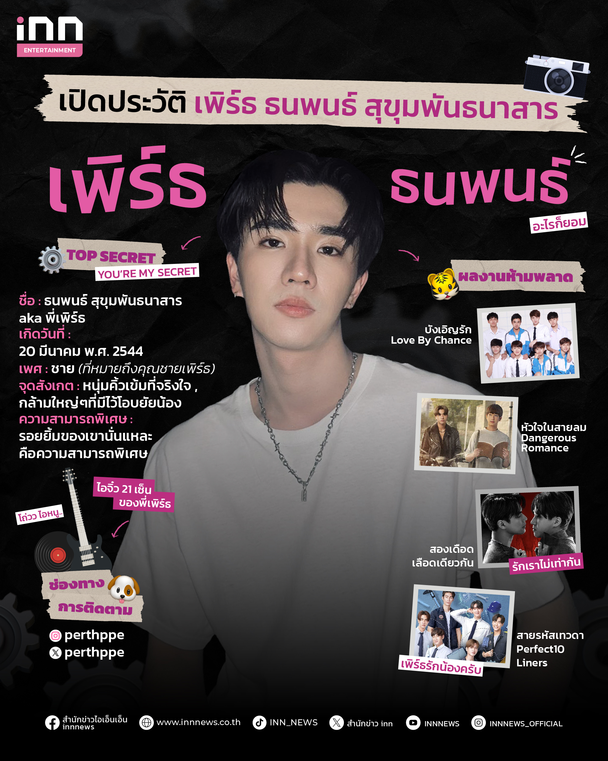 วันนี้ INN News ขอพาทุกคนไปรู้จักกับเพิร์ธให้มากขึ้น ว่าเขาเป็นใคร มาจากไหน และทำไมถึงได้กลายเป็นหนึ่งในศิลปินที่แฟนๆ หลงรักมากที่สุด ถ้าพร้อมแล้ว ตามไปทำความรู้จักกับเขากันเลย