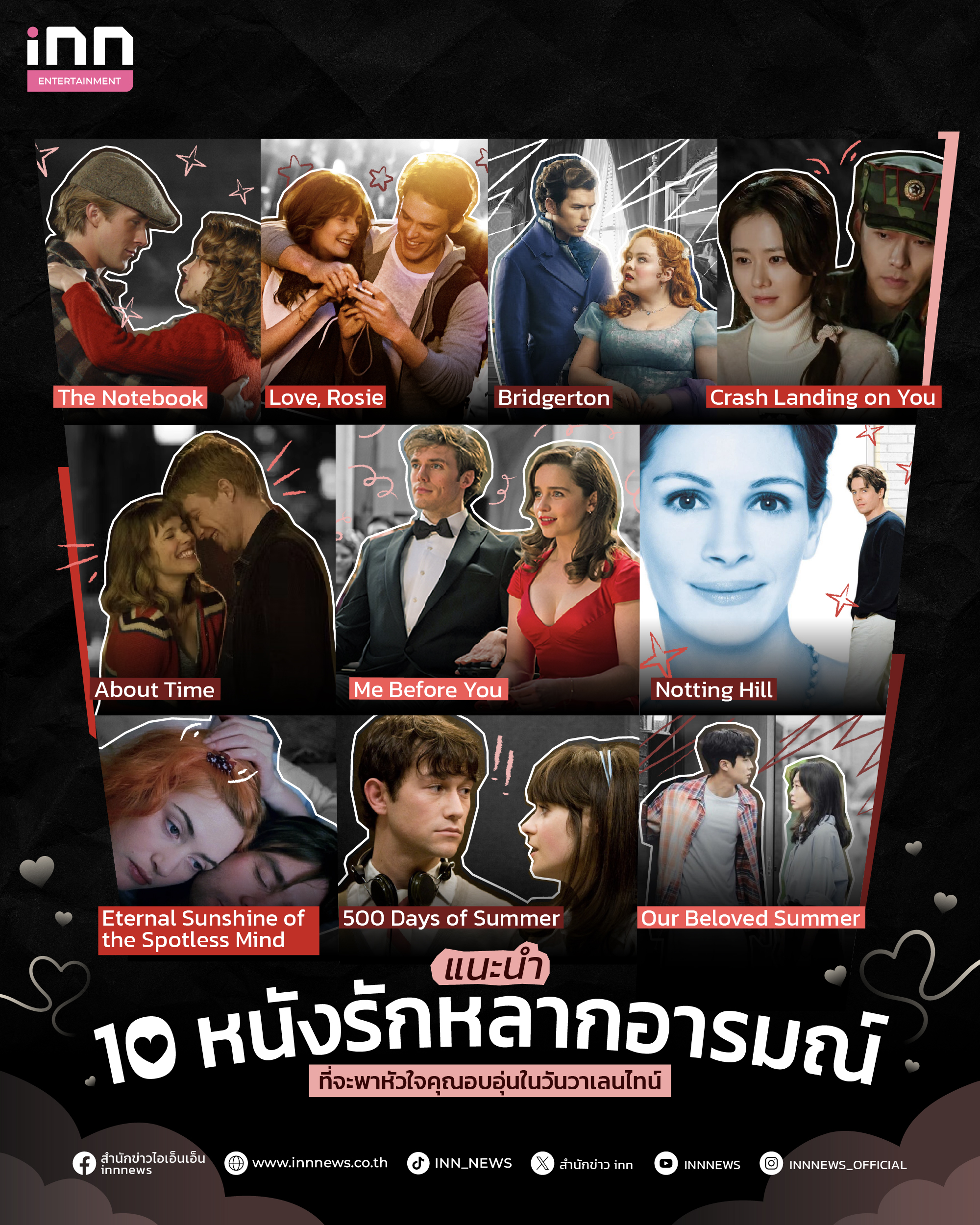 วาเลนไทน์ปีนี้ เติมความโรแมนติกให้หัวใจด้วยภาพยนตร์และซีรีส์ที่อบอวลไปด้วยความรัก ไม่ว่าคุณจะมีใครให้กุมมืออยู่ข้าง ๆ หรือเป็นคนโสดที่ขอใช้เวลาพิเศษกับตัวเอง วันแห่งความรักนี้ก็เป็นช่วงเวลาที่เหมาะที่สุดในการซุกตัวอยู่ใต้ผ้าห่ม นั่งชิลบนโซฟาพร้อมป๊อปคอร์นถังโต แล้วปล่อยให้เรื่องราวความรักบนจอพาคุณไปสัมผัสทุกอารมณ์ ตั้งแต่หัวเราะไปกับความน่ารักของตัวละคร ไปจนถึงการเสียน้ำตาให้กับฉากสุดซึ้ง เรารวบรวม 10 เรื่องราวความรักที่ทั้งละมุน อบอุ่น และเต็มไปด้วยพลังบวก มาให้คุณได้เลือกดูในค่ำคืนแห่งความรักนี้ มาดูกันเลยว่ามี หนังรักวันวาเลนไทน์ เรื่องไหนบ้าง! 💕