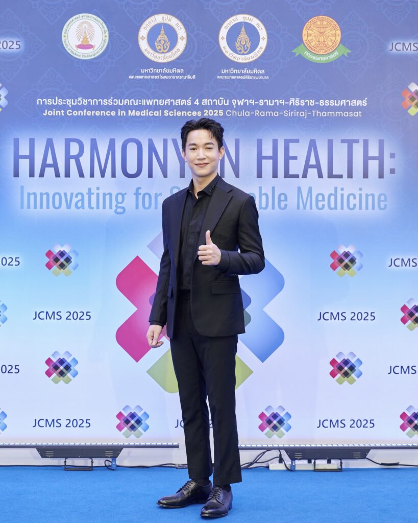 ซึ่ง “หมอริท-นพ.เรืองฤทธิ์” ได้เผยในฐานะแพทย์ว่า “รู้สึกดีใจและตื่นเต้นมากๆ ที่คณะแพทยศาสตร์ทั้ง 4 สถาบันชั้นนำของประเทศไทย ได้มาจับมือลงนามจัดงานร่วมกันในครั้งนี้ เพื่อสร้างองค์ความรู้ทางด้านวิชาการทางการแพทย์ และคิดว่างานในครั้งนี้จะช่วยต่อยอดในการพัฒนาวงการแพทย์ของไทยให้ก้าวหน้าต่อไปอีกในอนาคต โดยในงานครั้งนี้ก็จะมีทั้ง การจัดนิทรรศการ การจัดงานประชุมทางวิชาการ ทั้งในฝั่งของการแพทย์ แล้วก็มีในส่วนของภาคประชาชนด้วย ที่จะเปิดโอกาสให้เข้าร่วมกิจกรรมการออกกำลังกาย กิจกรรมส่งเสริมสุขภาพต่างๆ รวมถึงมีการพัฒนาด้านงานวิจัย ซึ่งจะมีการประกวดและแข่งขันนวัตกรรมงานวิจัยด้วย ก็คิดงานในครั้งนี้จะเกิดประโยชน์โดยตรงกับประชาชนเลยครับ เพราะเราตั้งต้นมาจากการพัฒนาองค์ความรู้ของฝั่งแพทย์ การที่คณะแพทย์ทั้ง 4 สถาบัน ได้จับมือร่วมกัน แล้วก็พัฒนาองค์ความรู้ร่วมกัน ก็จะทำให้ทิศทางหรือแนวทางการพัฒนาความรู้ ก็จะเติบโตไปในทิศทางเดียวกัน และจะมีการส่งต่อองค์ความรู้นี้มาใช้พัฒนาวิธีการรักษา หรือพัฒนาต่อยอดในการวิจัยรักษาคนไข้ต่างๆ ให้ดีขึ้นในอนาคต ซึ่งก็จะตกไปสู่ประชาชนโดยตรงเลยครับ และจริงๆ ต้องบอกว่าวงการแพทย์ของประเทศไทยไม่น้อยหน้าประเทศไหนเลย และองค์ความรู้ เทคโนโลยี นวัตกรรมการแพทย์ของประเทศไทยเรา ก็เรียกว่าได้รับการเป็นที่ยอมรับในระดับโลกด้วยนะครับ ก็ขอฝากไว้ด้วยนะครับสำหรับงาน JCMS 2025 สำหรับคณะแพทย์บุคลากรทางการแพทย์ของทั้ง 4 สถาบัน แล้วก็สถาบันอื่นได้ด้วยนะครับ ก็ขอเชิญชวนที่งานประชุมวิชาการนี้ ก็คิดว่าจะได้เห็นอะไรที่เป็นความร่วมมือครั้งยิ่งใหญ่ในครั้งนี้ แล้วก็ไปงานเดียวคิดว่าคุ้มแน่นอน เพราะว่าอย่างที่ว่าการจับมือร่วมกันครั้งนี้ เขาทำอะไรที่ไม่ธรรมดาแน่นอนครับ ขอเรียนเชิญนะครับ”