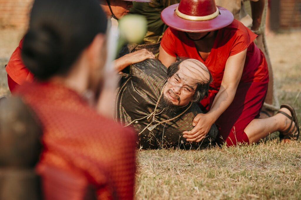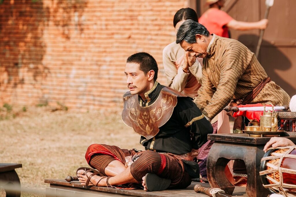 เบื้องหลังฉากนี้ ผู้กำกับ สันต์ ศรีแก้วหล่อ สั่งทีมงานเนรมิตลานกว้างของสตูกันตนา ศาลายา ให้กลายเป็นลานพิธีประหารของวันทอง และเพราะความยิ่งใหญ่สมจริงของฉากนี้ จึงทำให้ดูมีมนต์ขลังเป็นพิเศษ ก่อนถ่ายทำทีมงานพร้อมด้วยนักแสดงกว่า 50 ชีวิต ได้ทำการจุดธูปเทียน พร้อมพวงมาลัยเพื่อขอขมาเจ้าที่เจ้าทาง ให้การถ่ายทำฉากสำคัญของเรื่องสำเร็จลุลวงไปได้ด้วยดี ยิ่งโดยเฉพาะสาวใหม่ที่ดูมุ่งมั่น ตั้งใจเป็นพิเศษ เพราะการสวมบทวันทองในวันนี้ เป็นอีกหนึ่งซีนยาก ที่ต้องการกำลังใจเป็นอย่างมาก เมื่อใหม่ และนักแสดง ทีมงานทุกคนพร้อม ผู้กำกับสั่งเตรียมตัวซักซ้อมคิวถ่ายทำต่างๆ หนึ่งรอบ ก่อนจะเริ่มถ่ายทำจริง เริ่มที่ ใหม่กับป้องเดินทางมาถึงยังลานประหาร พร้อมด้วยทหารคุ้มกัน ทันทีที่มาถึงปุโรหิตรีบสั่งให้ทหารพาตัวใหม่ไปที่หลักประหาร พร้อมกับให้เพชฌฆาตใช้เชือกผูกตัวใหม่เข้ากับเสา ใหม่เริ่มน้ำตาคลอ แต่ก็ยังคงทำใจดีสู้เสือ ฟากป้องได้แต่นั่งมองใหม่น้ำตาไหล เสียใจที่ไม่สามารถช่วยอะไรได้ ส่วนชาคริตที่ไม่อยากให้ใหม่ต้องตาย พยายามวิ่งเข้าไปภายในลานพิธี แต่ก็ถูกทหารจับตัวไว้ จนกลิ้งล้มลุกคลุกคลานลงไปกับพื้น เมื่อใกล้ถึงเวลาประหารเพชฌฆาตนำดอกไม้ ธูป เทียน มาใส่ที่มือใหม่ ฟากใหม่รู้ได้ทันทีว่าชีวิตของตัวเองเหลือเวลาน้อยลงทุกที ก็เริ่มใจเต้นแรง ร้องไห้ออกมา เพชฌฆาตจึงเอาผ้าดำมาผูกตา และหยิบดาบมารำไปรอบๆ ตัว สักพักใหม่เริ่มนั่งนิ่งอยู่กลางลานประหาร ยอมรับชะตากรรมที่ตัวเองตัดสินใจเลือก ด้วยหัวใจที่เด็ดเดี่ยว และในวินาทีนั้นเองเพชฌฆาตเงื้อดาบขึ้นสุดแรง!! สุดท้ายแล้ว “วันทอง” 2021 จะจบลงอย่างไร? ติดตามได้ ในวันอังคารที่ 20 เมษายนนี้ เวลา 20.15 น. ทางช่องวัน31 อย่าลืมว่า #นี่ไม่ใช่วรรณคดีที่คุณเคยรู้จัก นะจ๊ะแม่จ๊ะแม่จ๋า