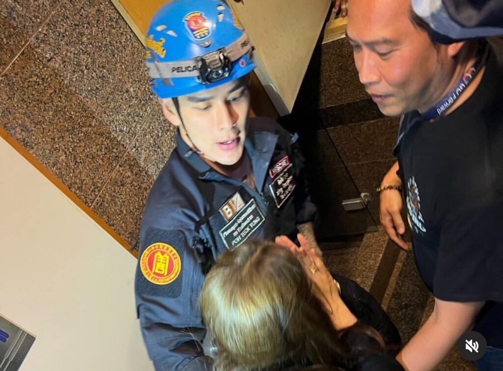 ล่าสุดทางด้านนักแสดงหนุ่ม “แทค ภรัณยู“ ได้ออกมาแชร์ประสบการณ์เข้าพื้นที่ช่วยเหลือคนไทย ที่ติดอยู่ในอาคาร และติดอยู่ในลิฟท์ โดยโพสต์ภาพใส่ชุดกู้ภัยขณะเข้าช่วยเหลือ พร้อมแคปช้่นว่า “ช่วยคนติดตึก แถวหลังสวน สำเร็จ #ป่อเต็กตึ๊ง”