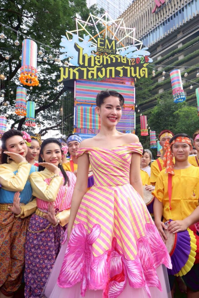 สำหรับงาน “เอ็ม ดิสทริค ไทยหรรษา มหาสงกรานต์ 2025”ในวันนี้ ได้รับเกียรติจากคุณสำรวย นักการเรียนผู้ตรวจราชการกระทรวงวัฒนธรรม และคุณศานนท์ หวังสร้างบุญ รองผู้ว่าราชการกรุงเทพมหานคร ร่วมเป็นประธานเปิดงาน โดยมีผู้บริหารเดอะมอลล์ กรุ๊ปให้การต้อนรับ และเปิดตัวเทพีไทยหรรษา มหาสงกรานต์ “ญาญ่า อุรัสยา”สวมชุดผ้าไทยร่วมสมัย สำหรับงานนี้เป็นอีเวนท์สำคัญที่ ทางเอ็ม ดิสทริค จับมือภาครัฐบาลและเครือข่ายภาคเอกชน จัดขึ้นเพื่อร่วมสืบสานประเพณีสงกรานต์ของไทย ซึ่งเป็นตัวแทนมรดกภูมิปัญญาทางวัฒนธรรมที่จับต้องไม่ได้ของมนุษยชาติ ตามประกาศขององค์การยูเนสโก ซึ่งเป็นกิจกรรมอีเวนต์ระดับประเทศที่ช่วยดึงดูดนักท่องเที่ยวชาวไทยและชาวต่างชาติ ปักหมุดแลนด์มาร์กสงกรานต์สุดยิ่งใหญ่ครั้งแรกใจกลางสุขุมวิท ที่นำเสนอเอกลักษณ์ความเป็นไทยด้วยกิจกรรมมากมาย อาทิ การเล่นน้ำสงกรานต์กลางสวน การแสดงศิลปวัฒนธรรมไทย อาทิ ขบวนกลองยาว ขบวนนางรำ เป็นต้น และความบันเทิงจากศิลปินชั้นนำยกทัพมาร่วมสร้างความสุขได้อาทิ บุรินทร์ บุญวิสุทธิ์, จ๊ะ นงผณี, แอนโทเนีย โพซิ้ว, โอปอ สุชาตา, The Paradise Bangkok Molam International Band และอีกมากมาย ร่วมเล่นเกมเกมส์งานวัดแสนสนุก ไม่ว่าจะเป็น หนุ่ม-สาว ตกน้ำ, ปาโป่ง ยิงปืนจุกน้ำปลา และเกมสนุกอื่นๆ พร้อมชมความน่ารักของการแสดงของ หนูน้อยเทพีสงกรานต์ รวมถึงอิ่มอร่อยกับอาหารไทยเลิศรส ระหว่างวันที่ 12 – 14 เมษายน 2568 เวลา 15.00 – 21.00 น. ที่อุทยานเบญจสิริ ถนนสุขุมวิท (BTS พร้อมพงษ์) และเอ็มยาร์ด ชั้น G เอ็มสเฟียร์ และชมความตระการตาของ ขบวนรถ ไทยหรรษา มหาสงกรานต์ ที่รังสรรค์การตกแต่งอย่างสวยงาม พร้อม Mascot ช้างน้อยน่ารัก, นางสงกรานต์ และขบวนกลองยาว ร่วมสาดความสนุกทั่วกรุงเทพมหานครผ่านถนนและและแลนมาร์คสำคัญของกรุงเทพอย่าง อนุสาวรีย์ประชาธิปไตย, เสาชิงช้า ระหว่างวันที่ 11-14 เมษายน 2568