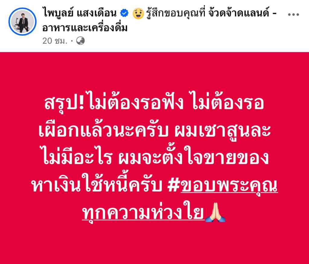 ”ครูไพบูลย์“ สั่งหยุดต่อมเผือก ขอลุยงานใช้หนี้ ลั่นขอบคุณทุกความห่วงใย ชาวเน็ตแห่ส่งกำลังใจให้