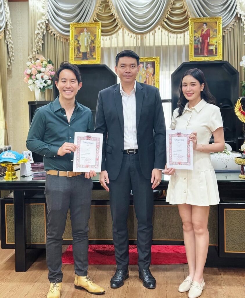 ล่าสุดเรียกว่าฤกษ์งามยามดี เมื่อทางด้านสาว “เบนซ์” ได้ควงสามี “แก๊ป” เดินทางไปจดทะเบียนสมรสสุดอบอุ่น พร้อมโพสต์ภาพและเขียนแคปชั่นว่า “ขอขอบพระคุณนายอำเภอบางละมุง ที่ให้เกียรติมาเป็นสักขีพยาน จดทะเบียนสมรสให้กับเราสองคนนะคะ 🙏 @ohmmy.patch ขอบคุณคุณพ่อคุณแม่พี่แก๊ปด้วยค่ะ 💕”