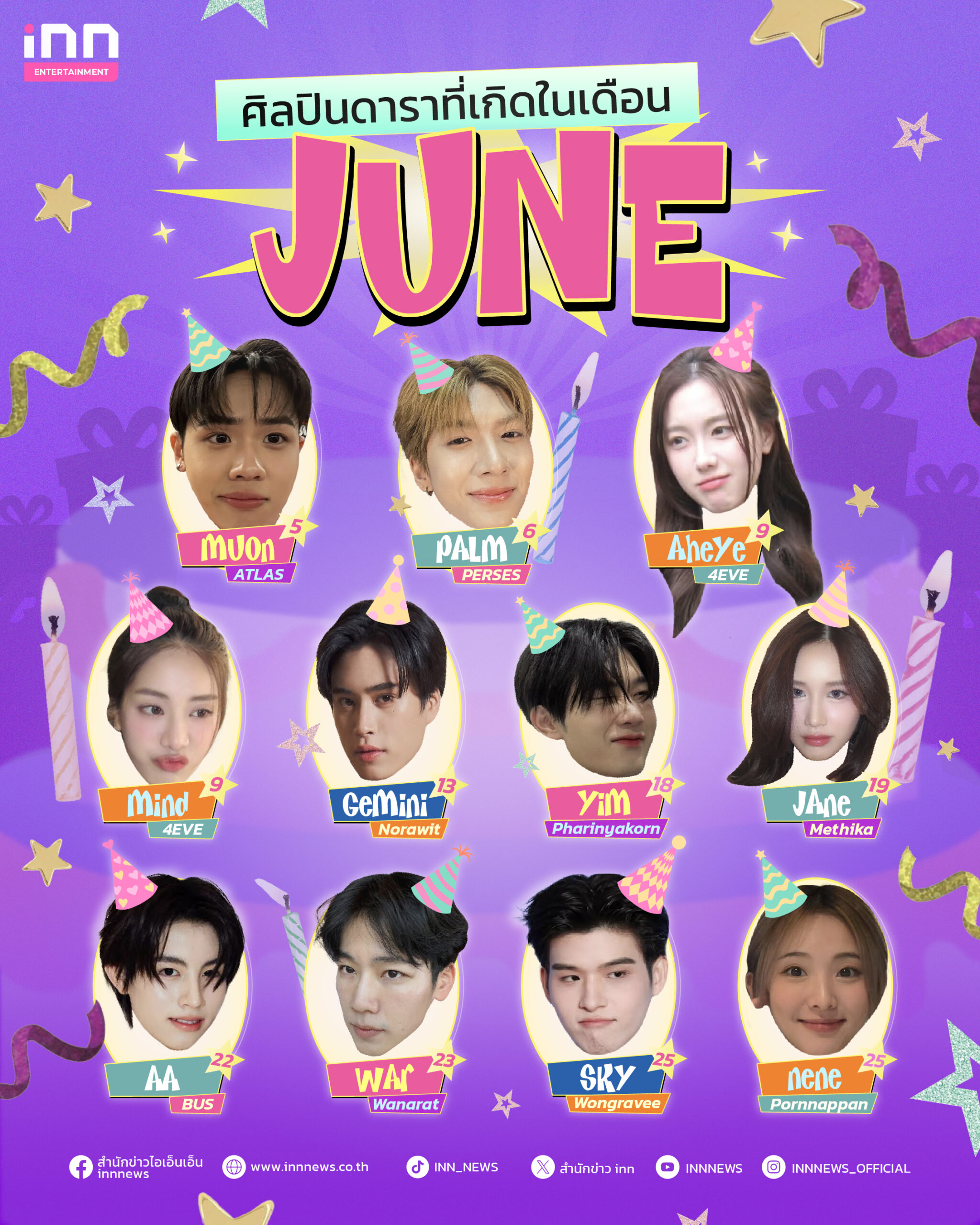 สำหรับ นักแสดง-ศิลปิน ที่เกิดในเดือนมิถุนายนนี้ ทางเราก็ขอให้ ศิลปิน และ นักแสดงทุกคน มีความสุข มีผลงานปัง ๆ ออกมาให้พวกเราและเหล่าแฟนคลับได้ติดตามกัน และขอให้ทุกคนถูกค้นพบมากขึ้นเรื่อยๆ ขอให้สนุกกับสิ่งที่ทำต่อไปนะ ทางเราพร้อมที่จะซัพพอร์ตพวกคุณเสมอ ขอให้มีวันที่ดีนะ ❤︎