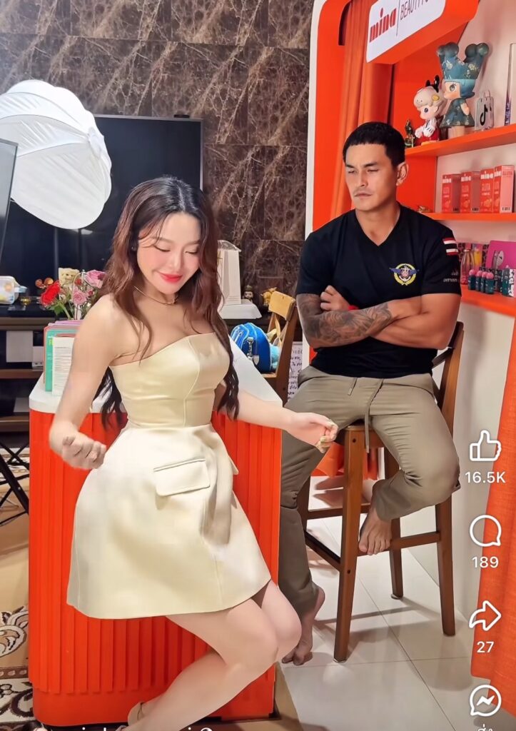 เช่นเดียวกับสาว “มายด์ ณภศศิ“ ที่ไม่พลาดควงแฟนหนุ่ม ”สงกรานต์“ ออกมาทุบสะโพกเก็บของกับเขาบ้าง แต่ที่พีคสุดก็ตอนเก็บของสุดท้ายที่ฝ่ายชาย ใช้เท้าเตะฝ่ายหญิงจนกระเด้น