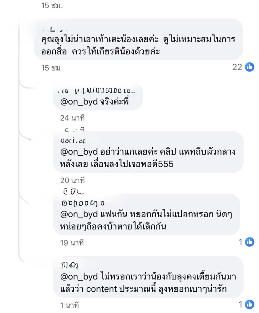 ท่ามกลางแฟนคลับเข้ามาชื่นชมความน่ารักของทั้งคู่ แต่ไม่วายก็มีดราม่า เพราะมีคนชอบก็ต้องมีคนไม่ชอบ โดยมีชาวเน็ตบางคนมองว่า ไม่ควร เอาเท้าเตะน้องเลยมันดูไม่เหมาะสมไม่ให้เกียรติ แต่ก็มีแฟนคลับเข้ามาปกป้องว่า แฟนกันหยอกกันไม่แปลก เชื่อว่าเค้าน่าจะจัดเตี๊ยมกันมาแล้วก่อนจะทำคอนเทนท์นี้