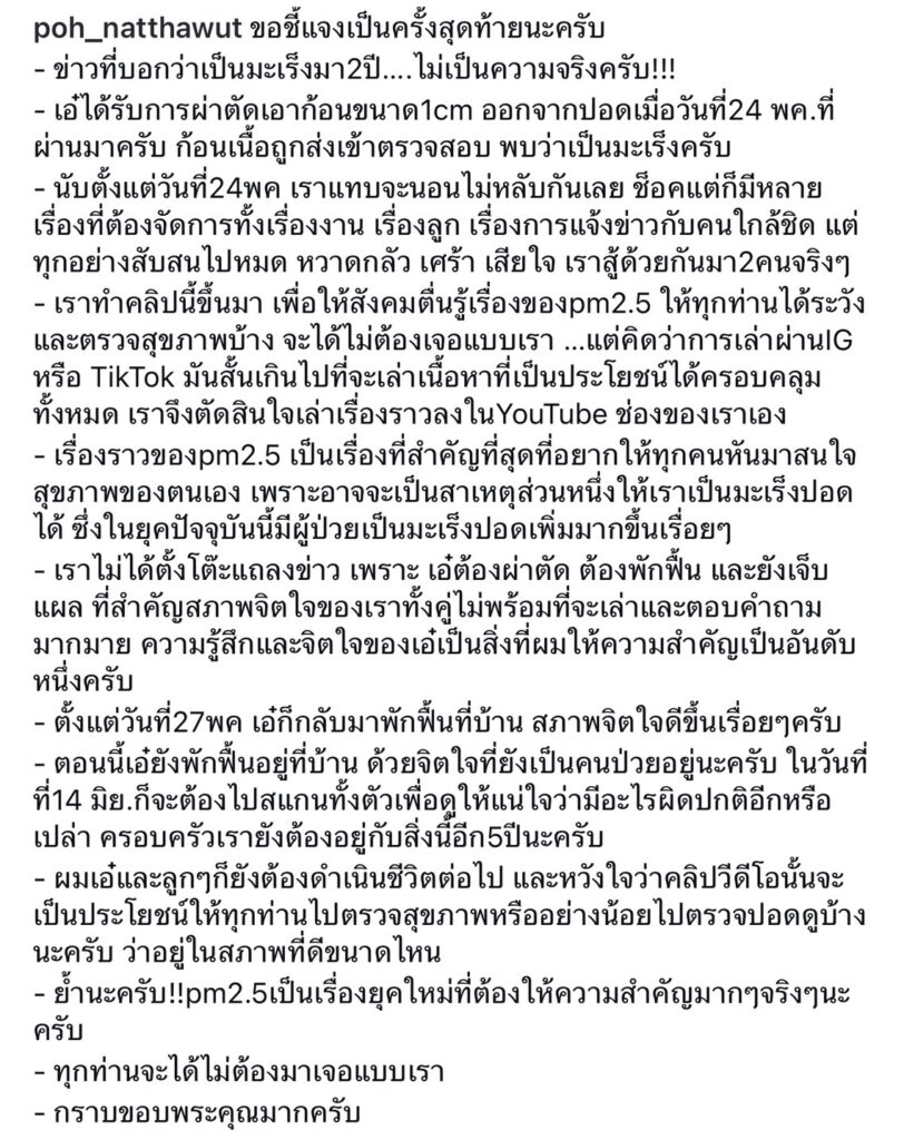 ชี้แจงครั้งสุดท้าย! “ป๋อ ณัฐวุฒิ” เปิดใจยังช็อก “เอ๋” เป็นมะเร็งปอด ยันไม่ใช่ 2 ปี