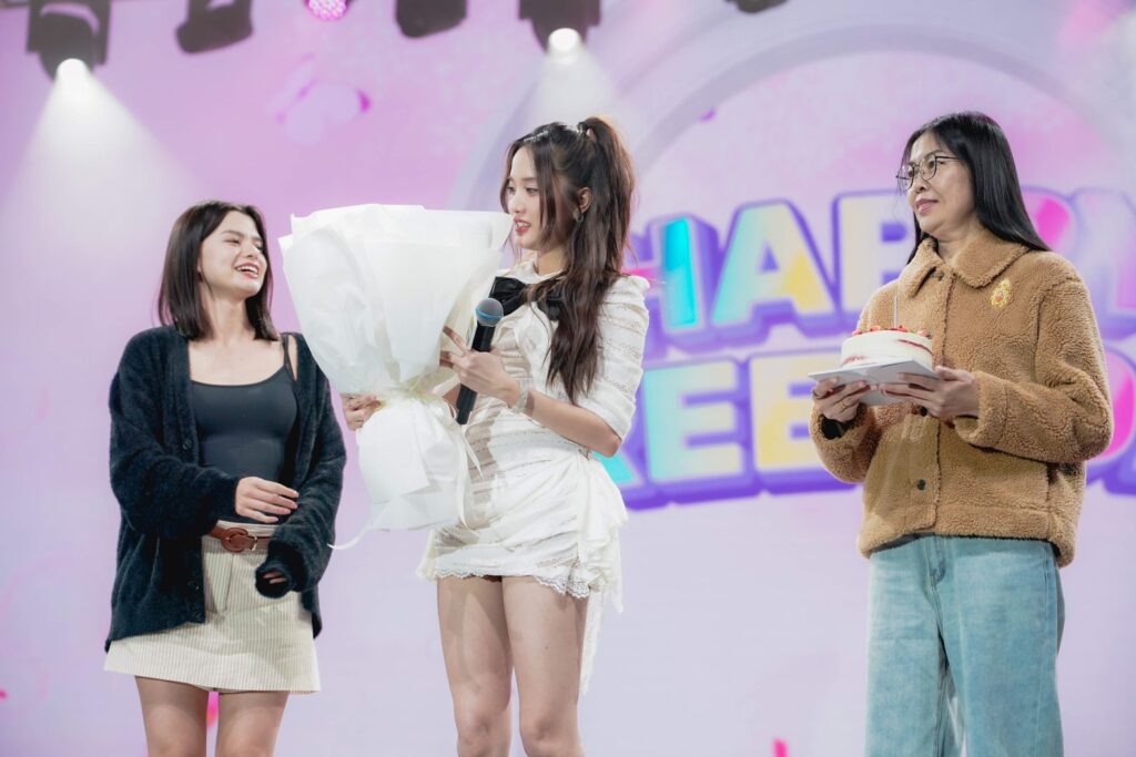 งานนี้ยังพิเศษสุดใจ ซุ่มตอบคำถาม 6คำถามเด็ดจากแฟนๆ และเชิญผู้โชคดีร่วมเล่นเกม Matching challenge เรียกเสียงหัวเราะและรอยยิ้มจากแฟนๆในฮอลล์ได้เป็นอย่างดี ขีดเส้นใต้ถึงช่วงที่ทุกคนรอคอย แฟนๆเซอร์ไพร์ส “สาวฟรีน” เปิดคลิป VTR Fanproject เล่าสตอรี่สวนดอกไม้ทิวลิปแชร์ทุกโมเมนต์ บันทึกทุกเรื่องราวสุดประทับใจของกันและกัน ทำเอาเจ้าของวันเกิดอย่าง “ฟรีน สโรชา” กลั้นน้ำตาไว้ไม่ไหว และเซอร์ไพร์สซ้อนเซอร์ไพร์ส เมื่อคู่จิ้นคู่ใจ “เบ็คกี้-รีเบคก้า” เคลียร์คิวด่วน วิ่งมาจากสตูดิโอที่เพิ่งถ่ายงานเสร็จสดๆร้อนๆ หอบดอกไม้สีขาวช่อต่อ โชว์พลังรักบริสุทธิ์ห่วงใยมอบให้บนเวที พร้อมด้วย “แม่นัน” ที่หอบเค้กและคำอวยพรอันเป็นมงคลเพื่อมอบให้กับลูกสาวสุดที่รัก